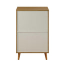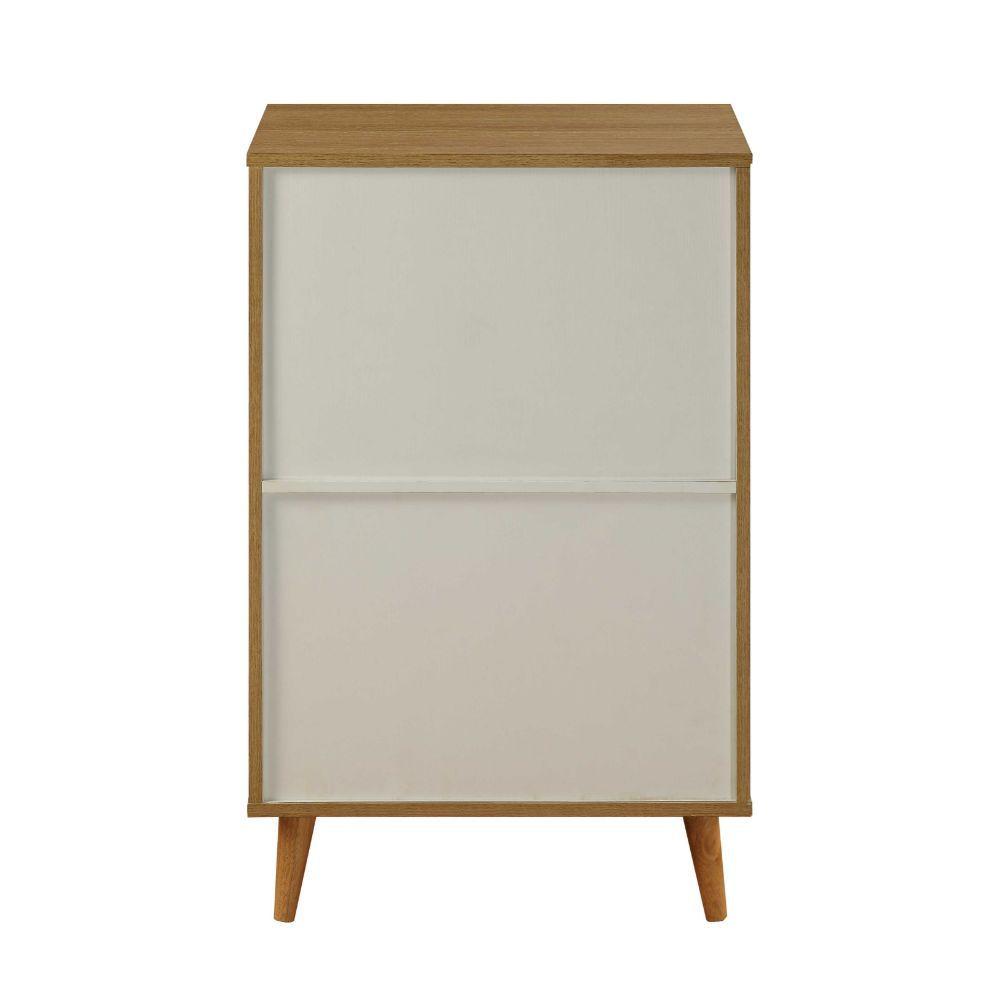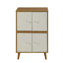 KD, Rectangular Console Table Storage: 4 Wooden Front Doors (2 Doors Top, 2 Doors Base, each with 1 Shelf Inside, 2 Compartments each) Wooden Case-Frame: Natural Finish Wooden Doors w/Diamond Grid Pattern: White Finish Wooden Tapered Legs: Height 6 Inches
