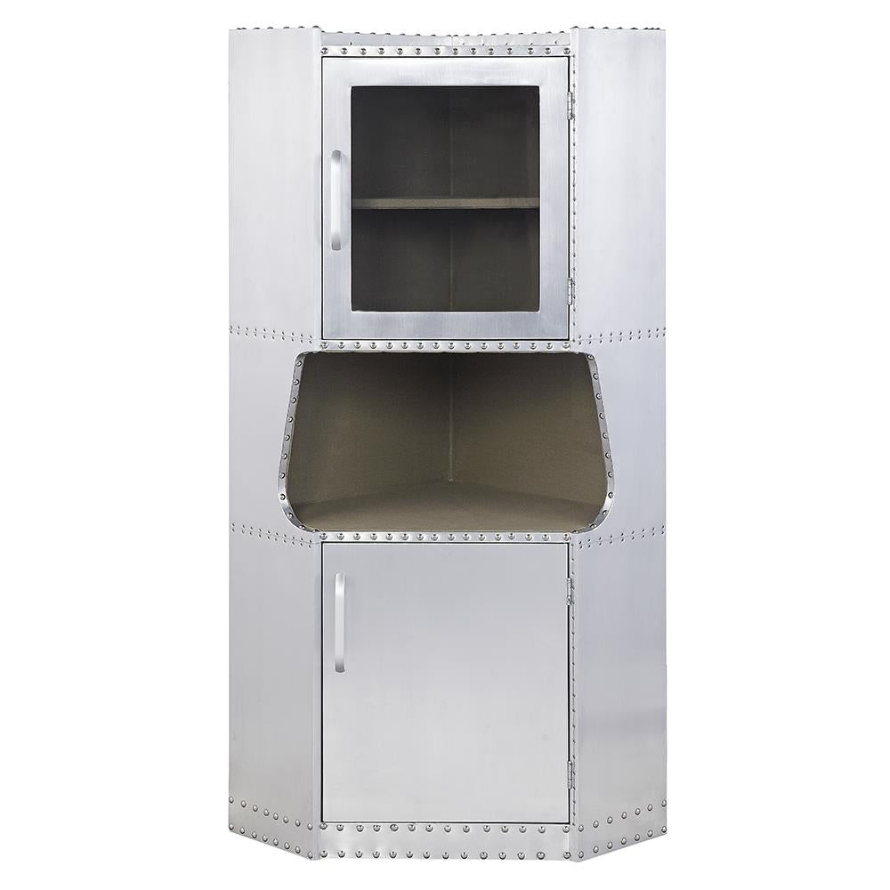 Industrial or rustic, the Brancaster corner cabinet makes a one-of-a-kind statement. The aluminum frame with one open compartment complements the aluminum panels on the two doors. Perfect for smaller spaces, it fits right into the corner of your intended area.
