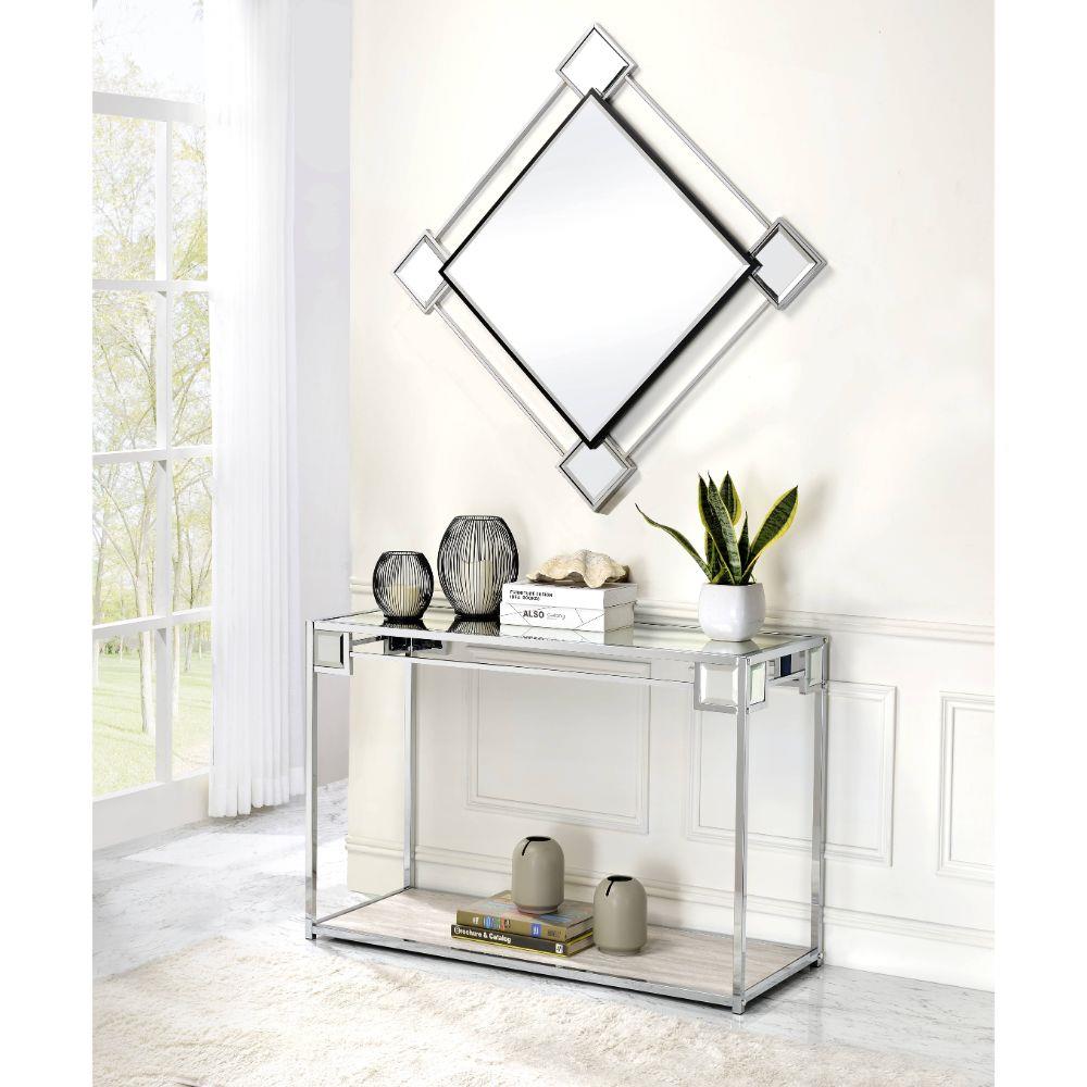 • Metal Tube Frame/Clear Glass Trim w/Cornered Mirrored Edge Accents, Chrome Finish