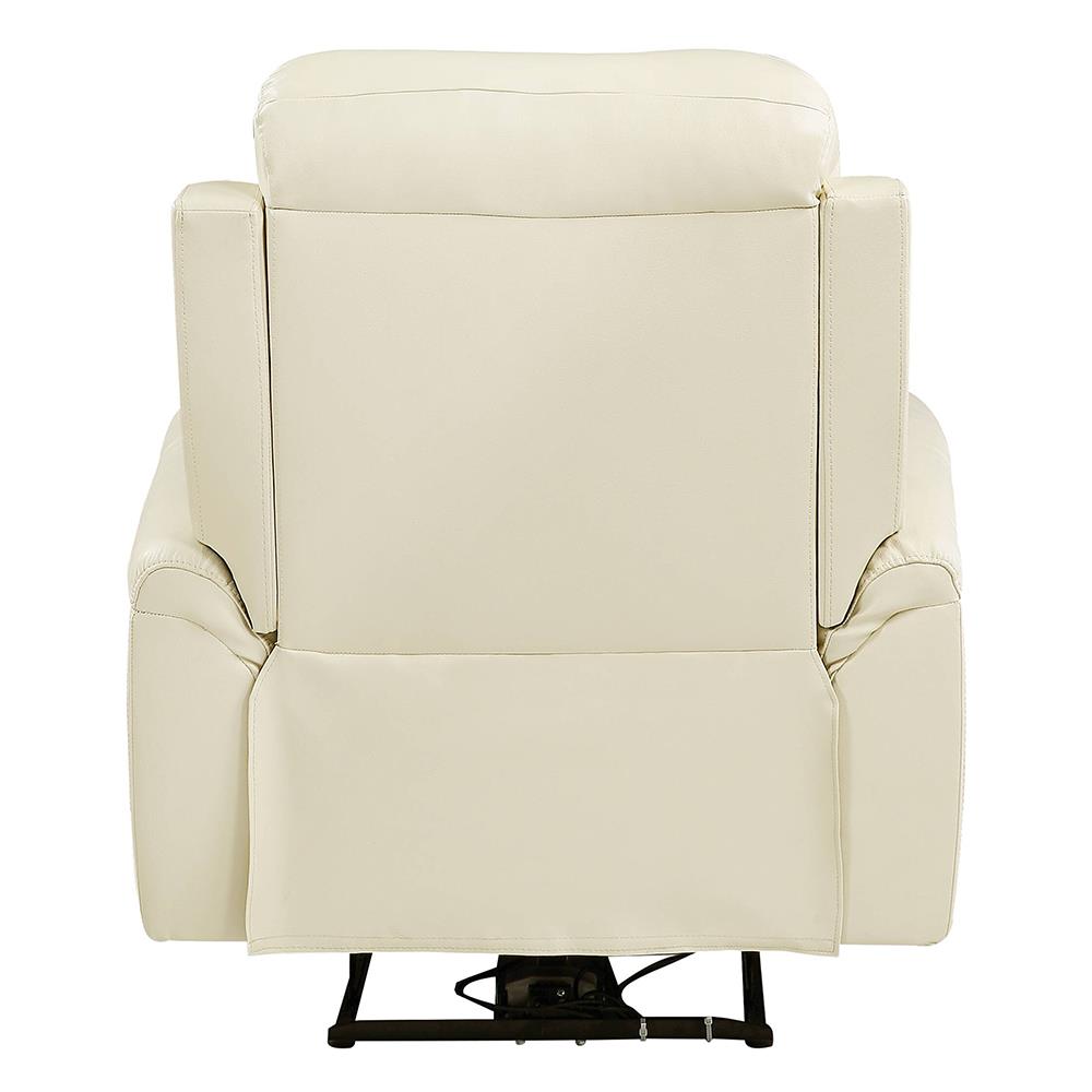 KD Back, Power Motion Reclining Function Tight Back & Seat Cushion NO Storage Horizontal Tufted, Stitching, (RA) CONSTRUCTION] Pocket Coil Seat, Inside Frame: Wood (Hardwood+Ply), Foam CUSHION: Tight () BACKREST: Horizontal Tufted, Tight Cushion ARMREST: Pillow Top Style Metal Base with Powered Reclining Motion: External Latch Push-Button (Outside Armrest), (Hengling Motor Mechanism) Material: Top Grain Leather Match (Solid Pattern) Pillow NOT Included (No Glider/No Rocker)