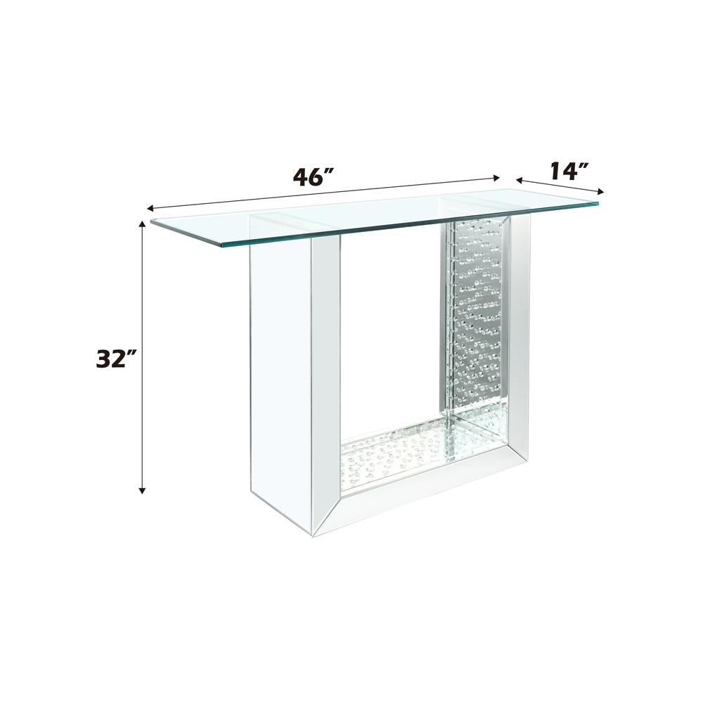• Features: Glass Top, Mirrored Sled Base w/Faux Crystals & Clear Glass