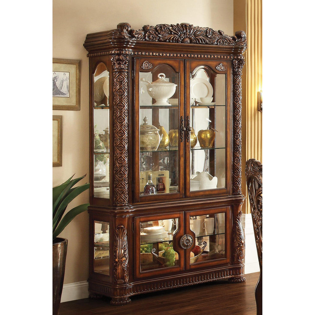 • Top: Touch Light, 2 Front Glass Doors (2 glass Shelves Inside & Back Mirror), Oversized Crown