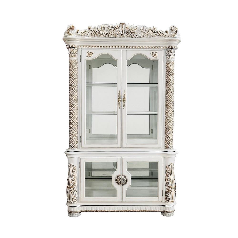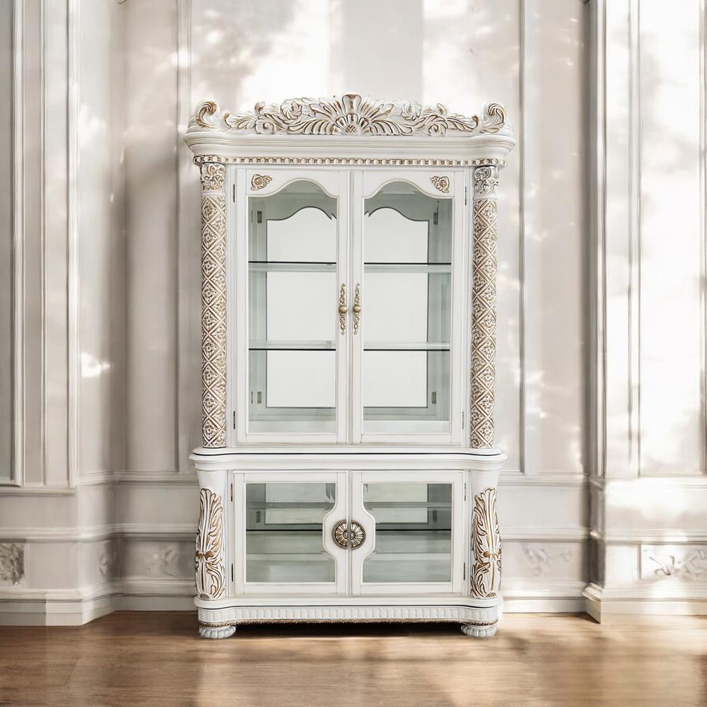 • Top: Touch Light, 2 Front Glass Doors (2 glass Shelves Inside & Back Mirror), Oversized Crown
