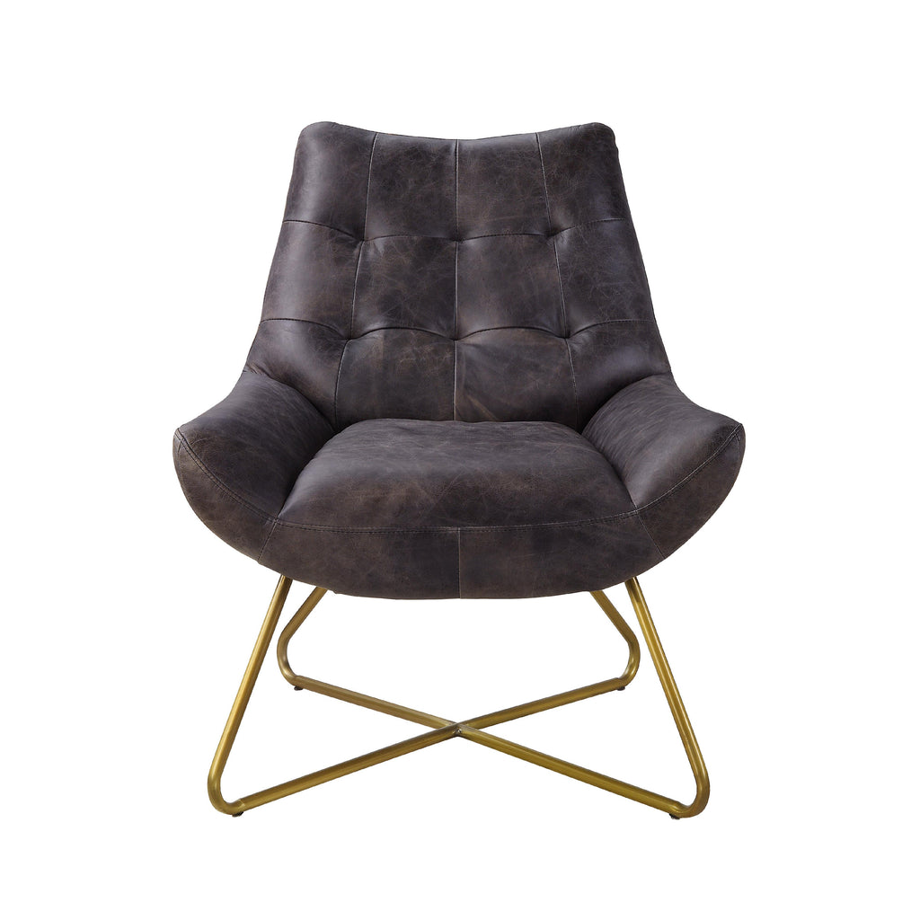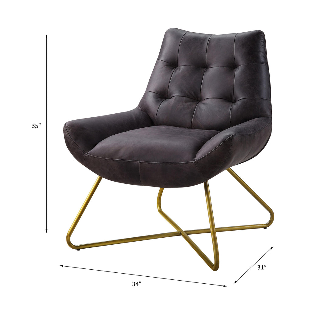 The Dhalsim armless lounge chair is the perfect accent seat that's been missing from your modern home. Upholstered in smooth antique ebony top grain leather and accented with tufting on the tight seat-back, Dhalsim features full foam seat construction and metal sled legs with x-shape support for high quality comfort that doesn't compromise on style.