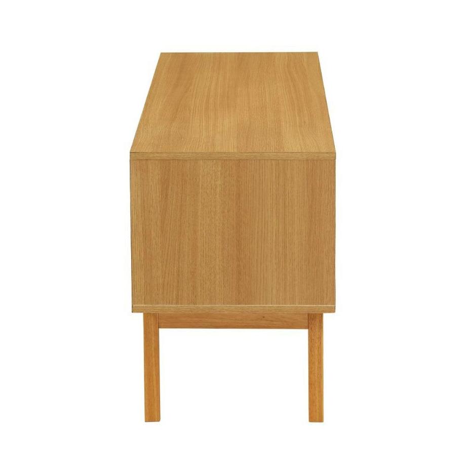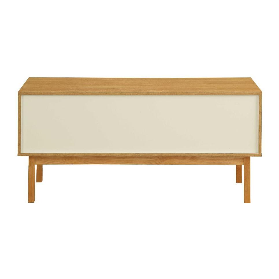 KD, Rectangular Console Table Storage: 5 Open Compartments Wooden Frame: Natural Finish Wooden Shelves: White Finish Wooden Square-Straight Legs: Natural Finish, Solid Wood, Height: 7 Inches
