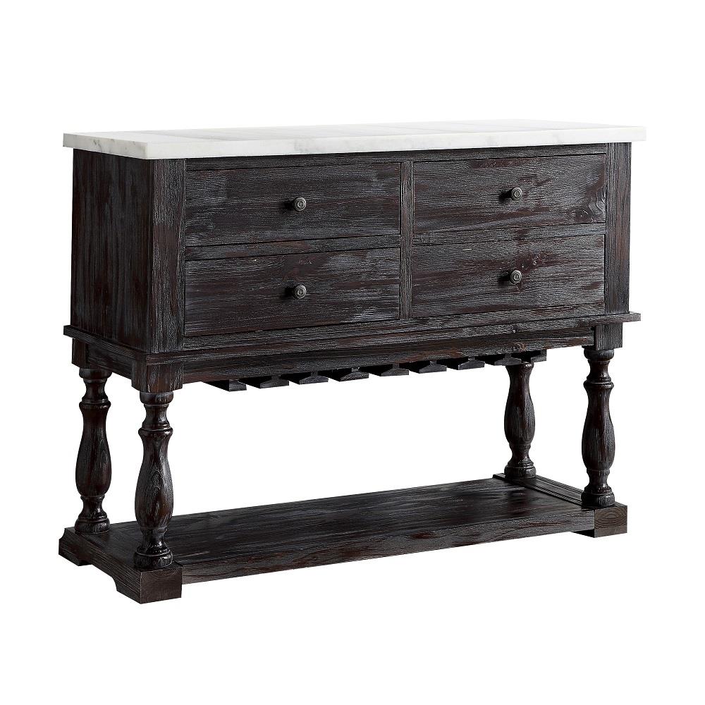 • Storage: 4 Drawers, Open Compartment w/Stemware Rack (Base Wooden Shelf)
