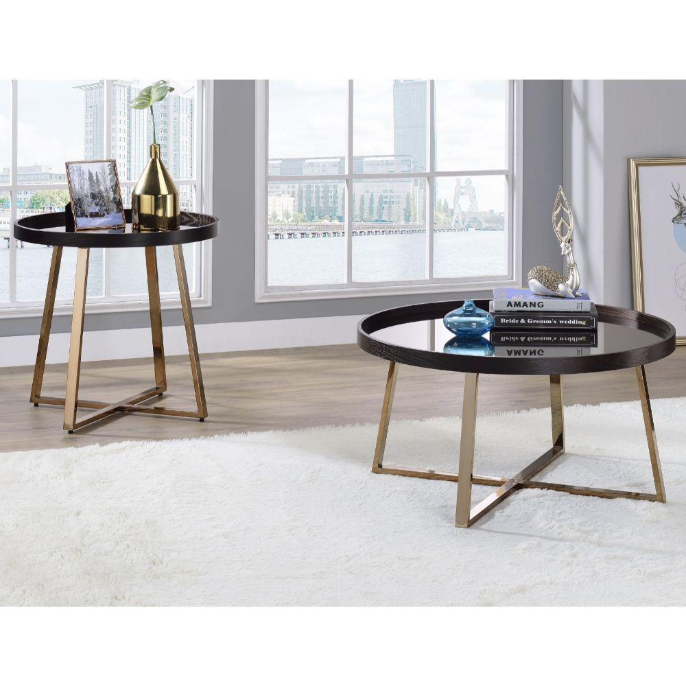 • Finish: mirrored, walnut & champagne