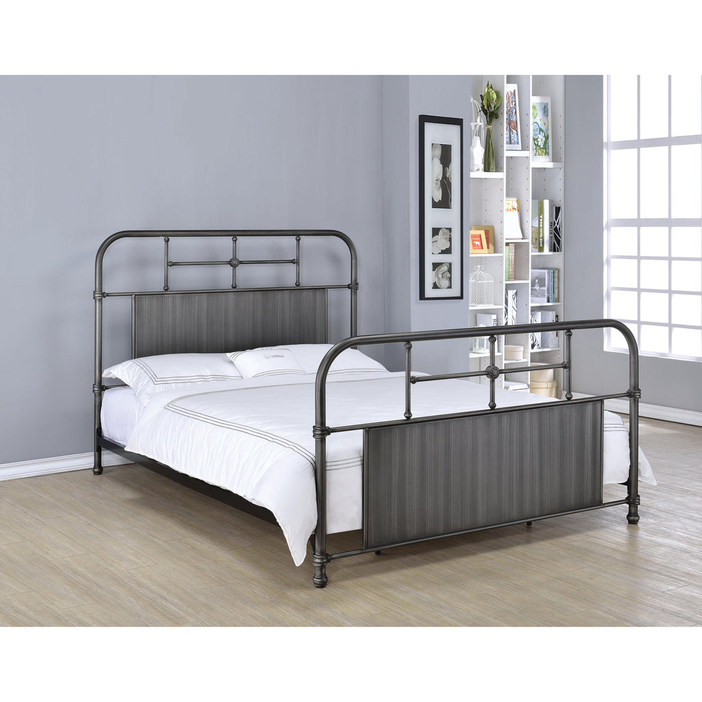 • Headboard/footboard have a panel in gray finish
