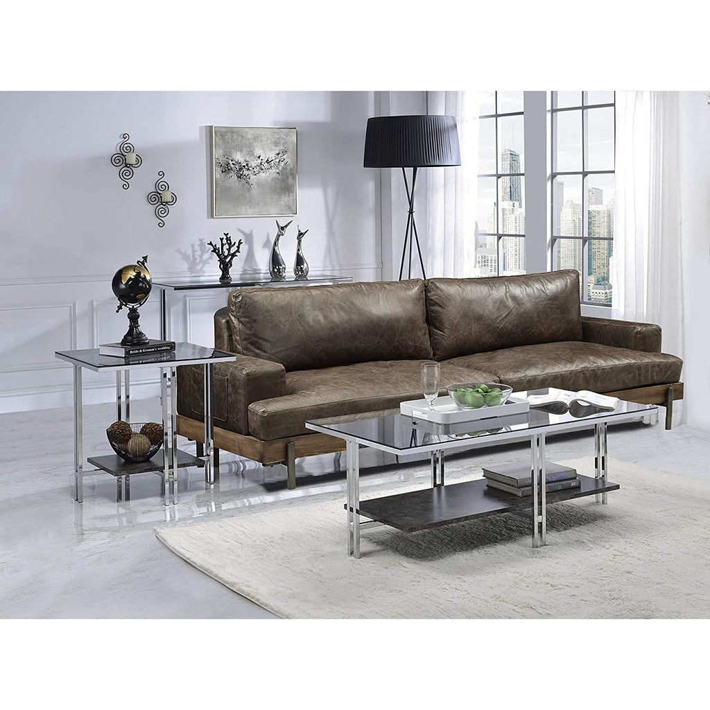KD, Rectangular End Table Storage: Open Compartment (1 Wooden Shelf, Fixed) Features: Glass Top, Faux Marble Shelf, Metal Leg Base (Open Base) CONSTRUCTION TOP) GLASS: 5mm (NO Apron) SHELF) Faux Marble: Paper Veneer, PB () BASE) Metal Straight Leg: Chrome Finish, Metal Tube