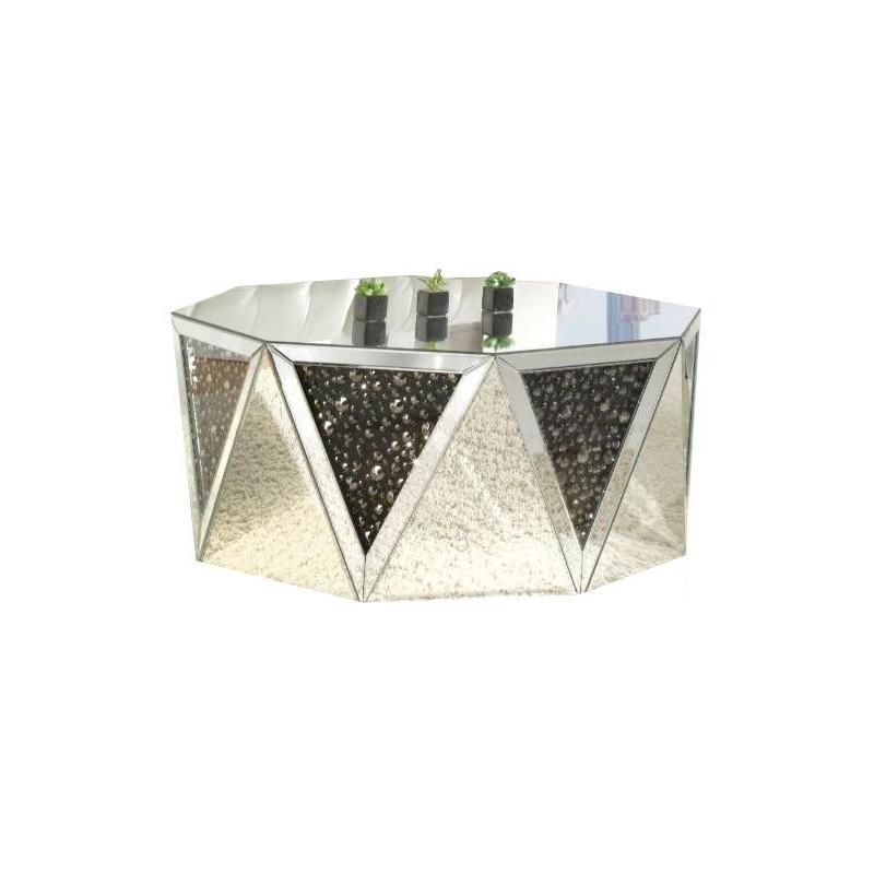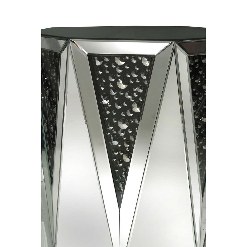 • Base with Geometric Triangular Shapes, Clear Glass and Faux GemStones Inlay; Mirror, MDF