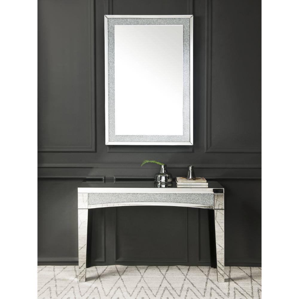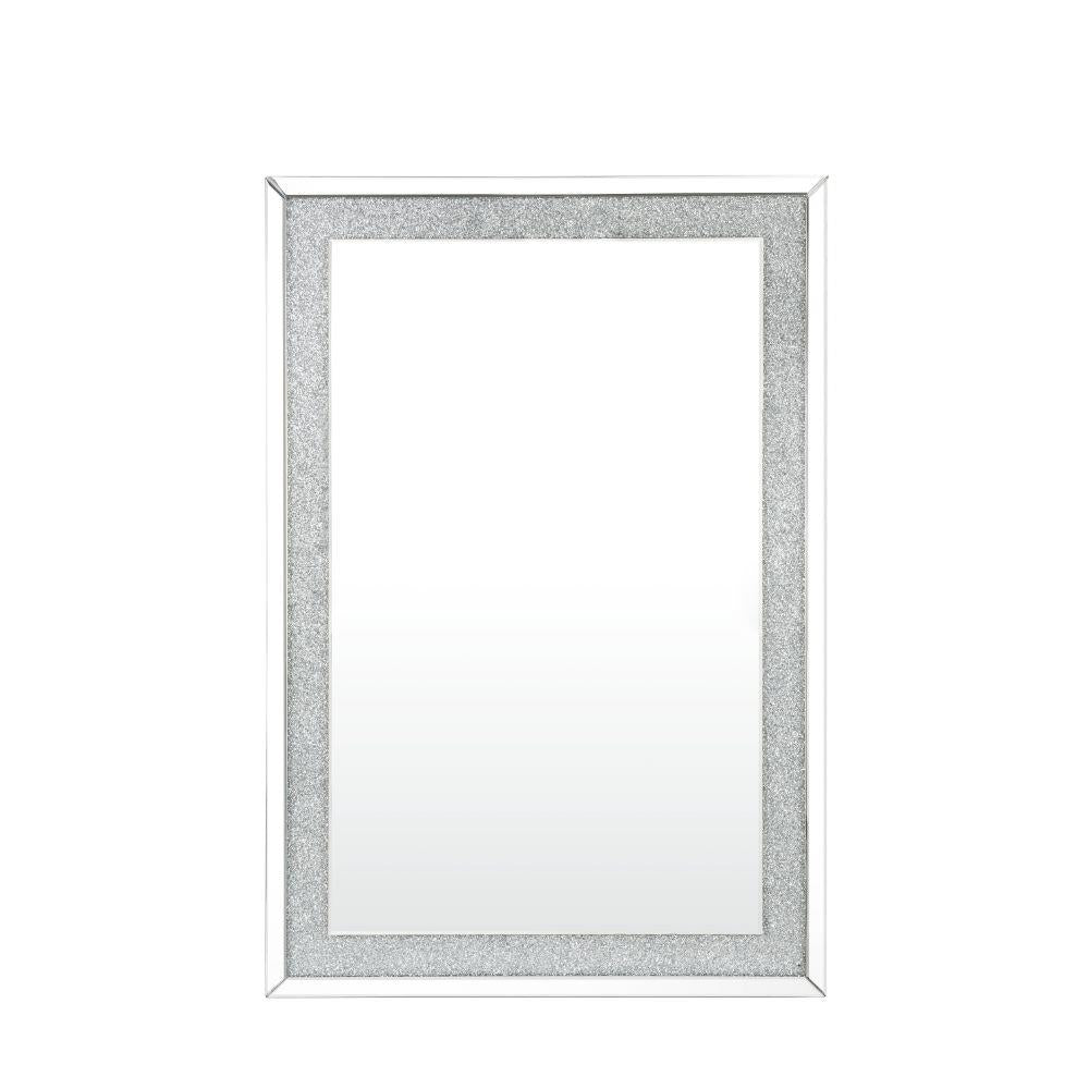 The faux diamond inlay is the finishing touch to the glamorous Noralie mirror. This well-built wall mirror features beveled mirrored trim with faux diamond inlay to reflect light and your bold aesthetic design. Its rectangular frame will work in your entrance, hallway, or living space.