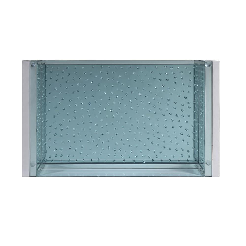 • Mirrored Sled Frame, Glass Top: 4mm Clear Tempered with Faux Crystals Inlay (Open Base)
