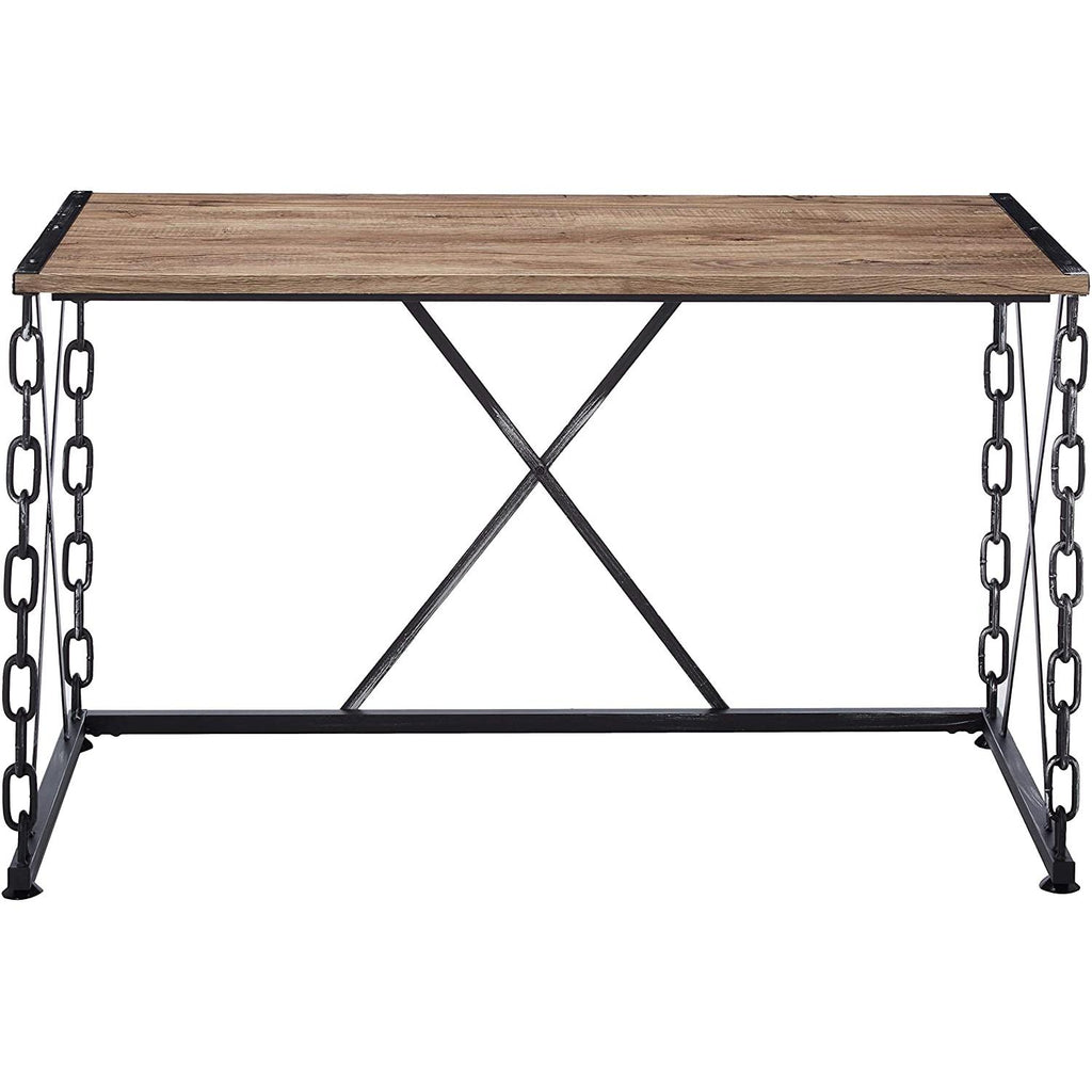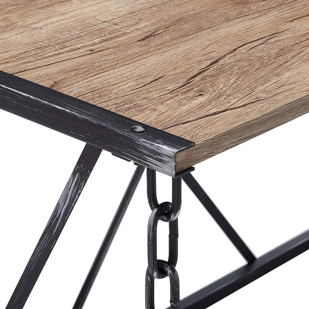 • Industrial Chain Metal Base: Black Antique w/Silver Brush Table Chain Legs (1.0" x 0.5"), (Leg Chain & "X" support) (No Drawer/No Shelf)