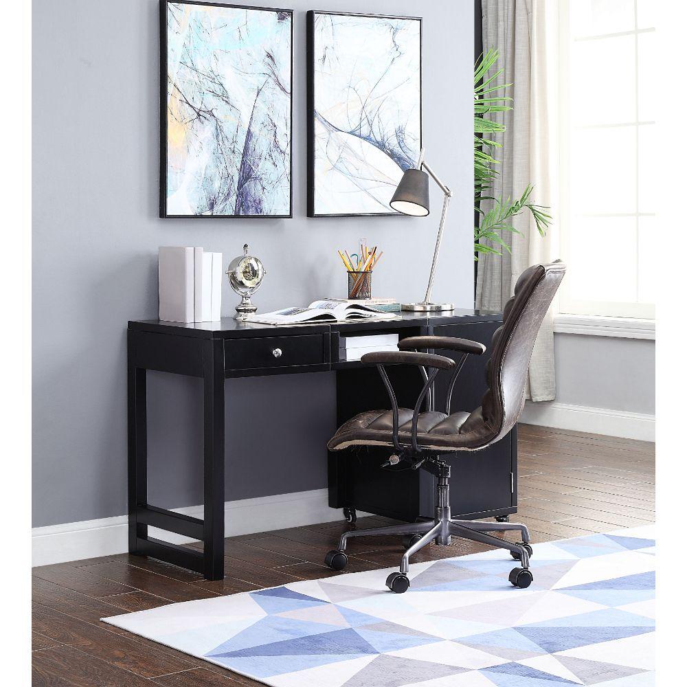 • Rectangular convertible desk transforms into a tall cabinet storage