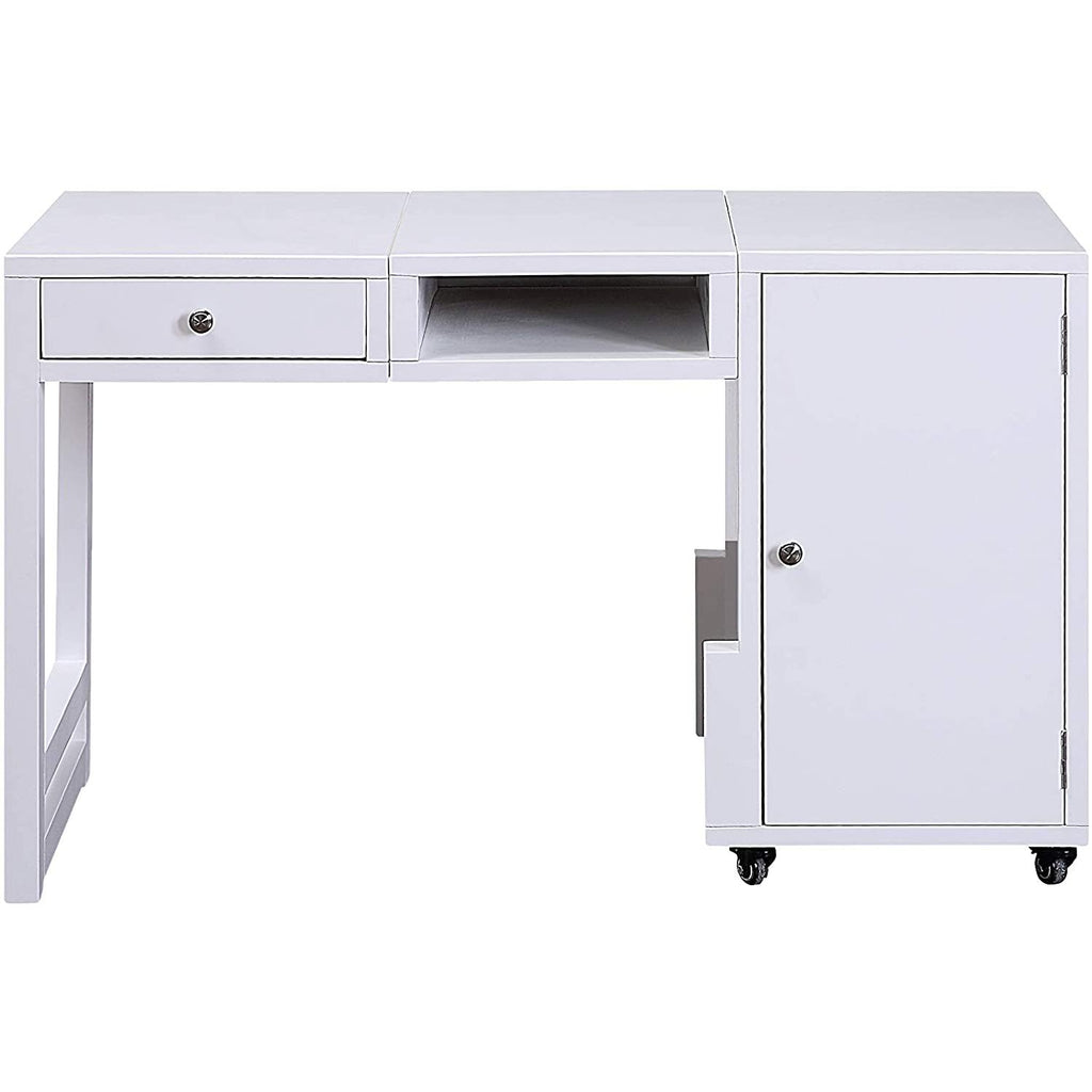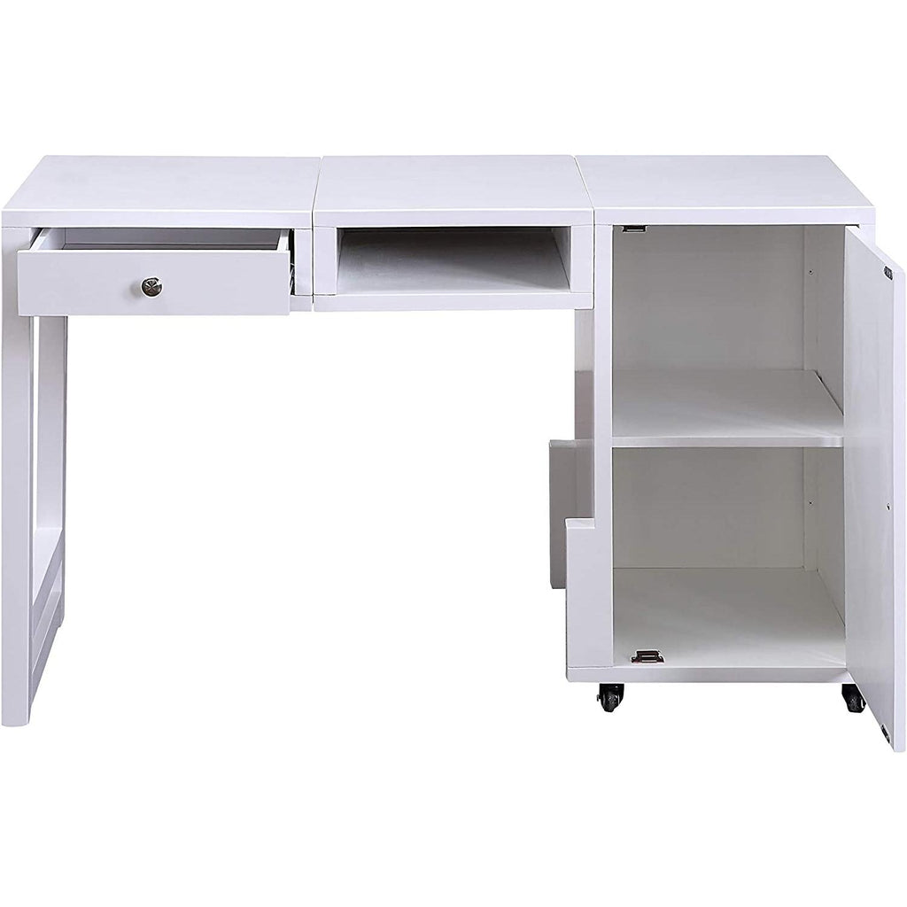 • Rectangular convertible desk transforms into a tall cabinet storage