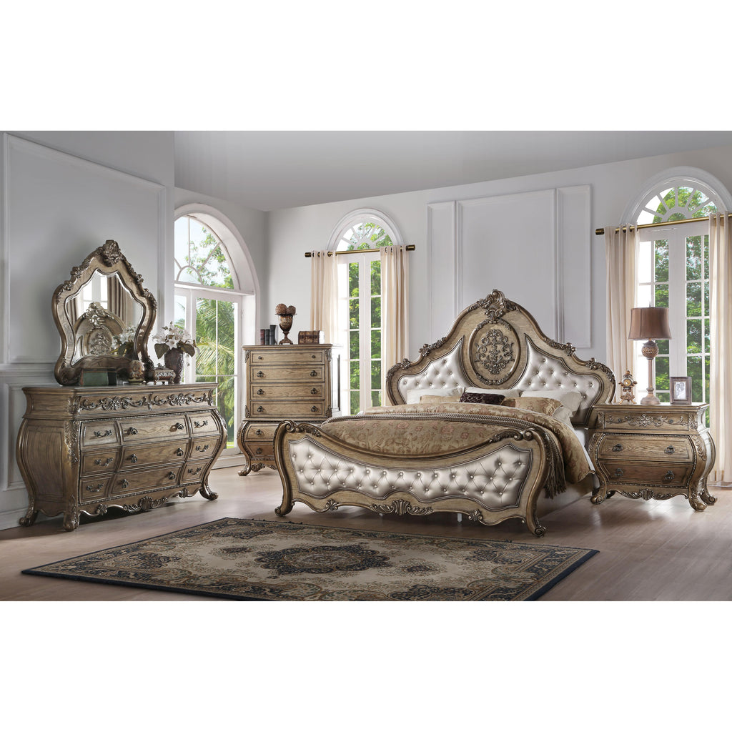 • PU upholstery inserts with button tufting details on headboard and footboard