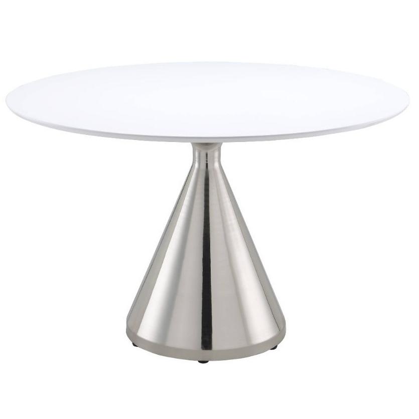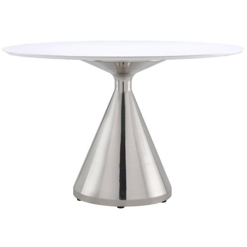 • High gloss top, metal single pedestal leg with geometric shape (solid base)