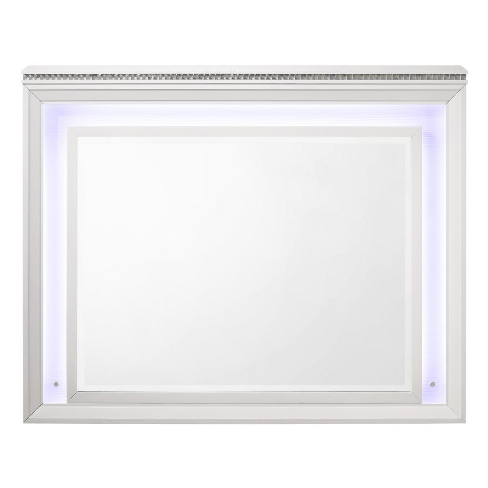 • Mirror, LED, rubber wood, MDF, and particle board construction