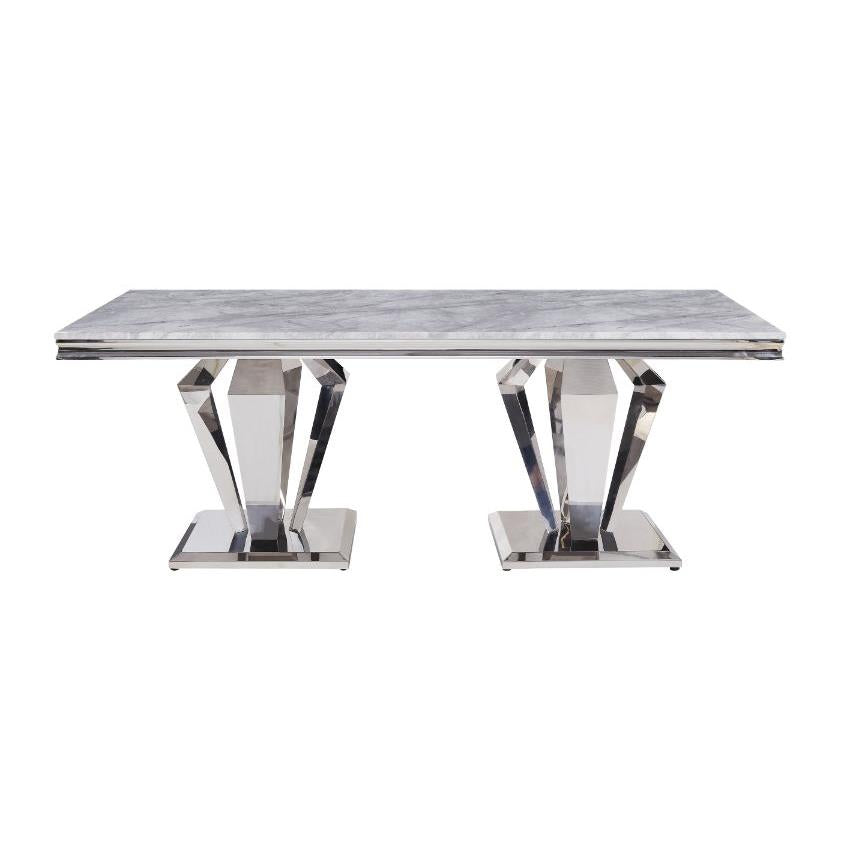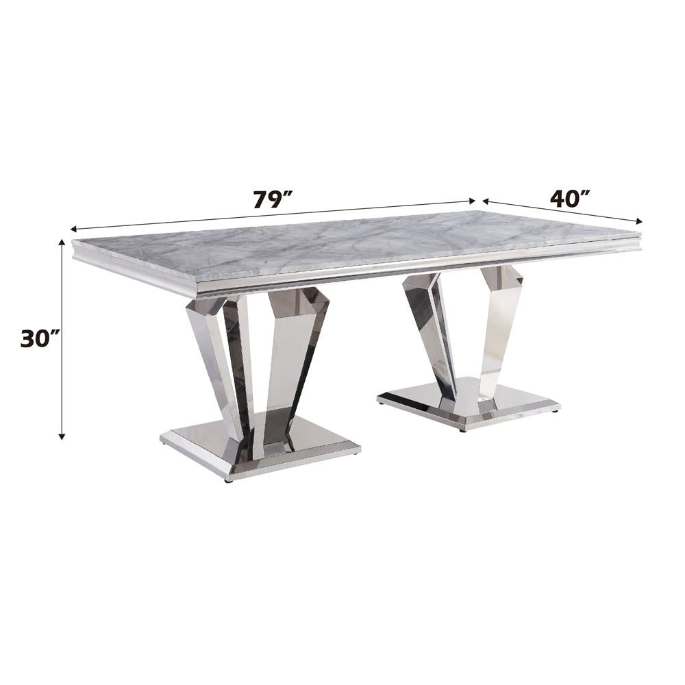Light Grey Printed Faux Marble Top & Mirrored Silver Finish