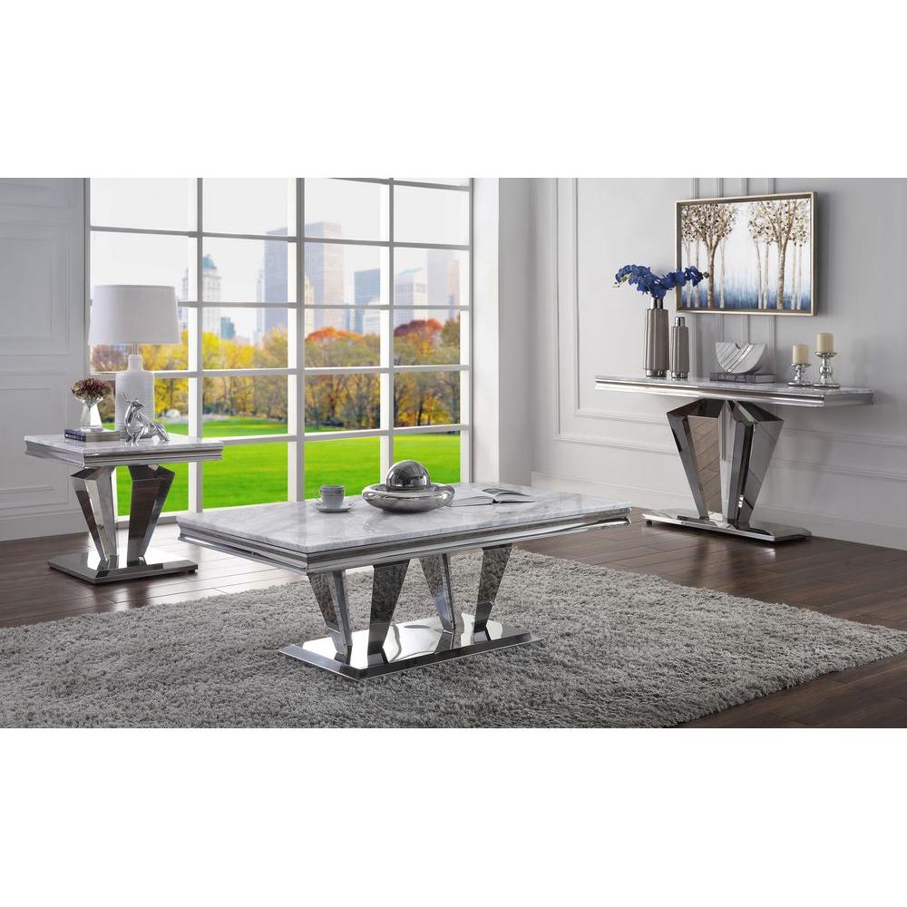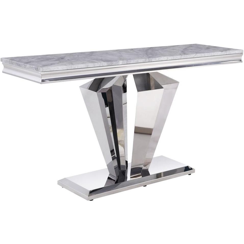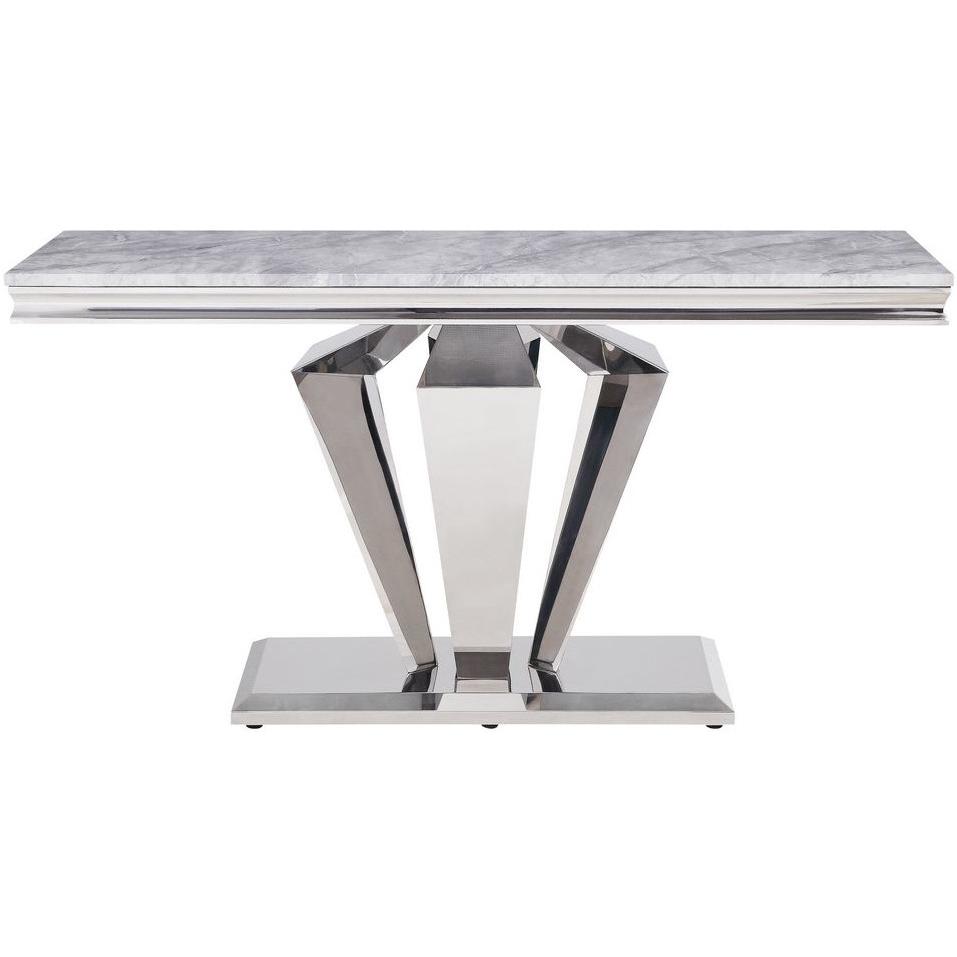 Light Grey Printed Faux Marble Top & Mirrored Silver Finish