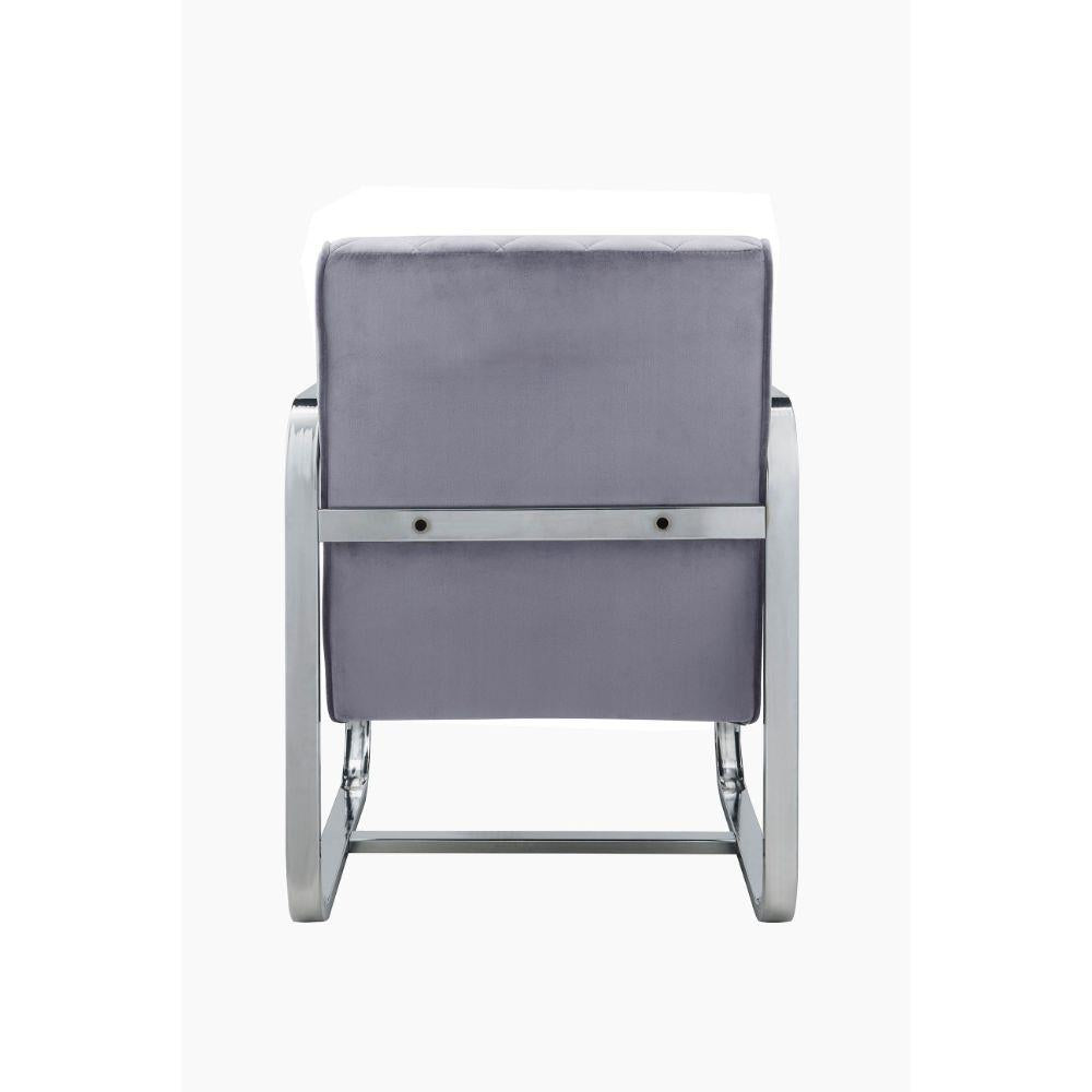 KD, Arm Chair (High Backrest) Stationary Seat Padded Seat & Back: Velvet Tight Seat & Back Cushion Metal Arm/Leg-Frame: Chrome Finish, Size 11" Construction: Inner Frame: Wood, Foam Material: PU (Diamond Grid Pattern), No Cushions