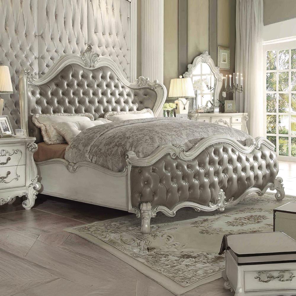 • Features: Padded Headboard/Footboard, Scrolled-Oversized Molding Trim, Button Tufted (Headboard/Footboard), Nailhead Trim, Antique Contrast Finish