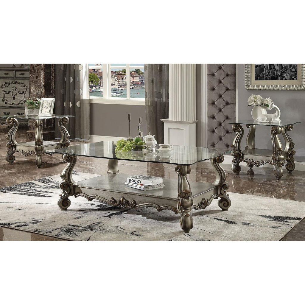 • Oversized Scrolled Legs & Shelf Apron: Poly Resin with Antique Contrast Finish