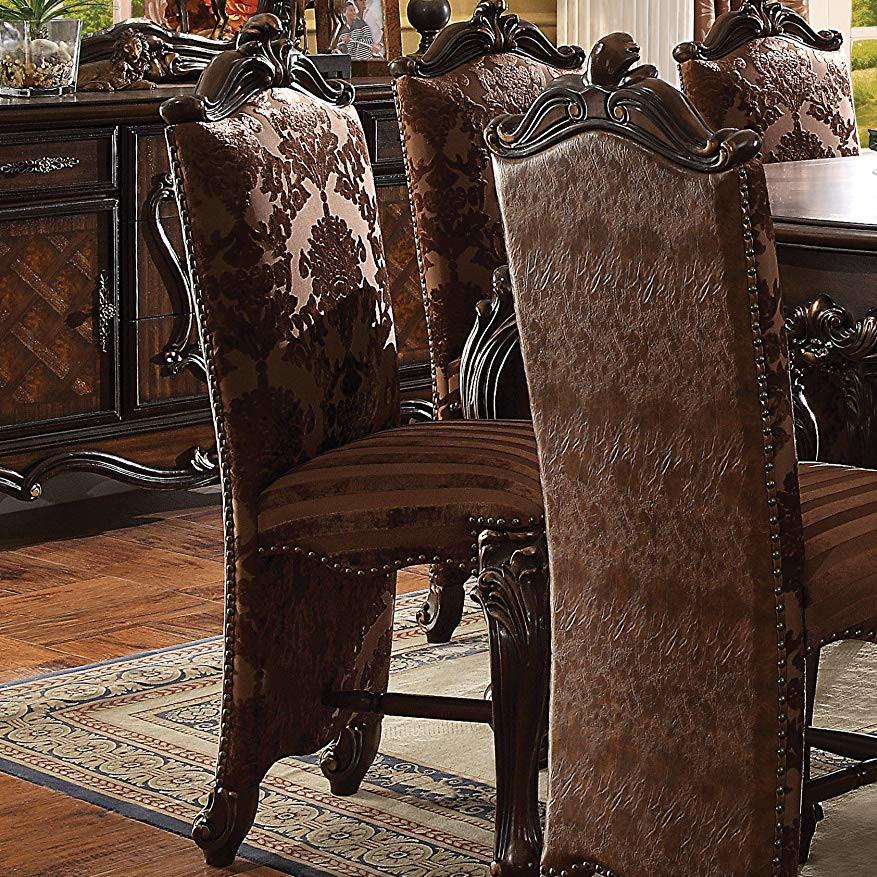 • BACKREST (Without Button): Scrolled Crown, Floral Fabric Inside and Brown PU Outside