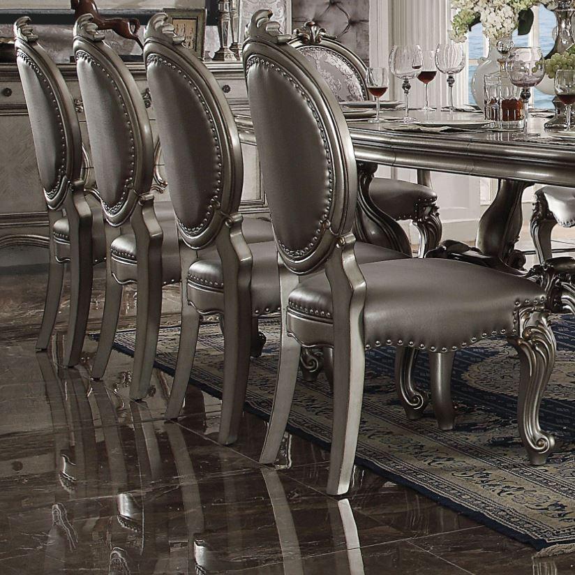 • BACKREST (Oval): Leaf Crown Motif, Floral Fabric Inside and Silver PU Outside