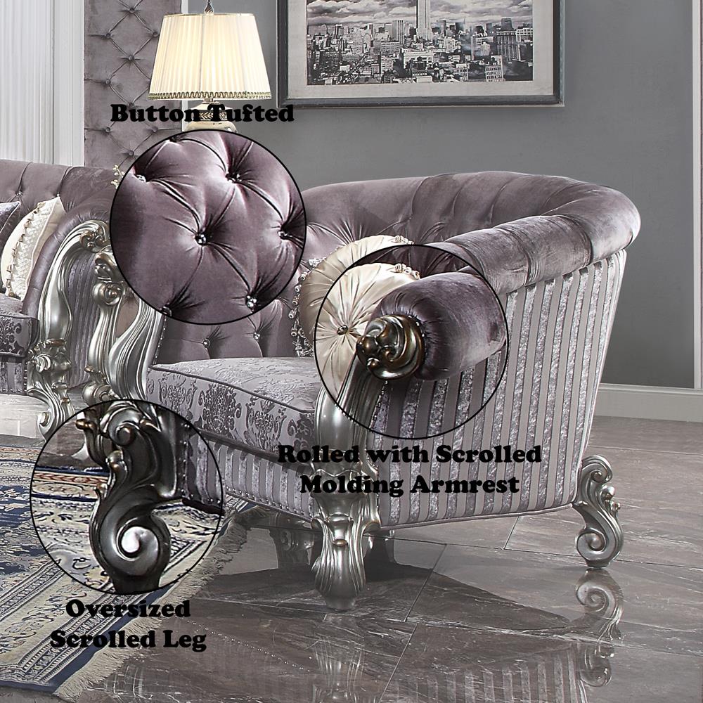 • Material: Velvet (Inside Back Solid Pattern, Floral Seat, Striped Base/Back)
