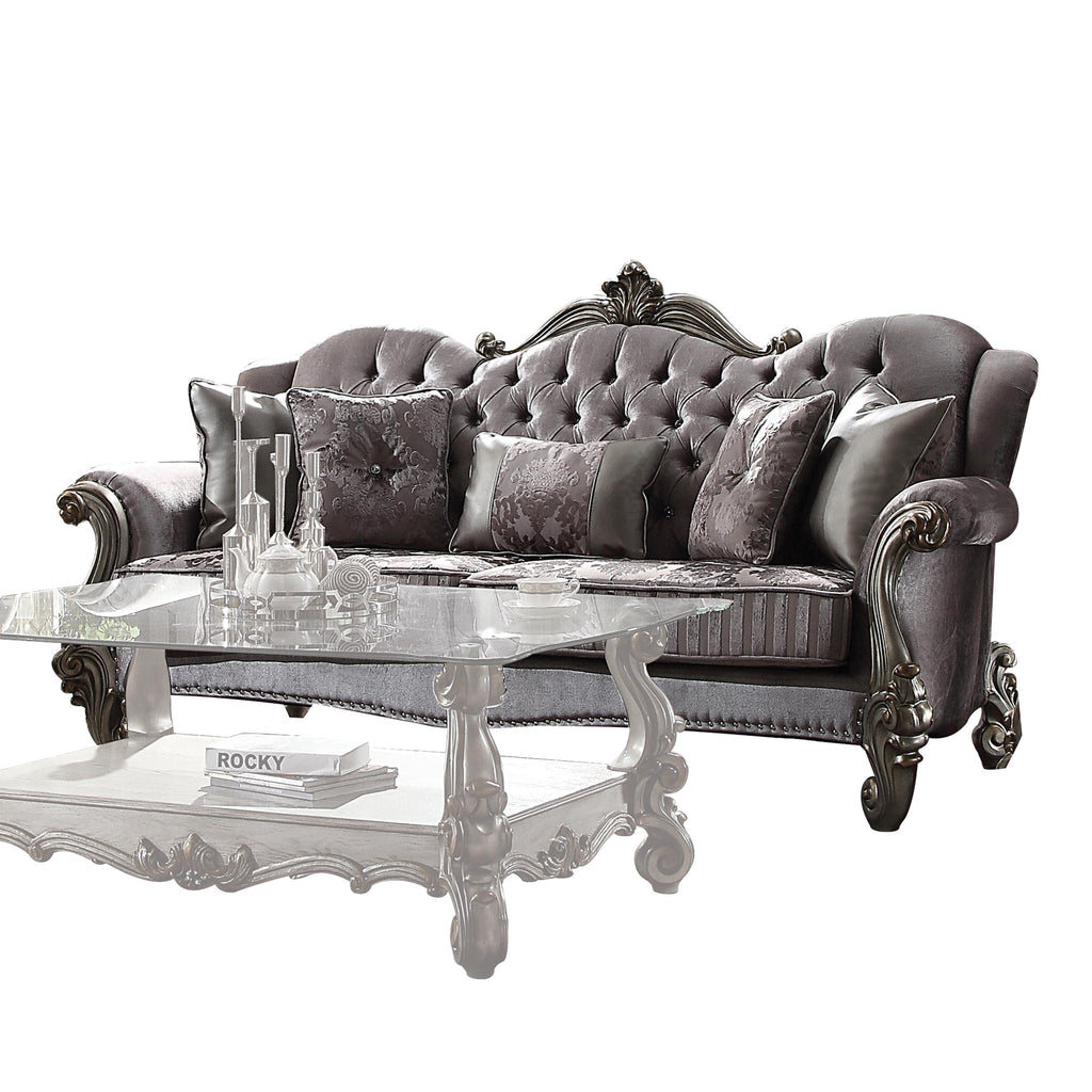• Scrolled Molding Trim: Vintage Hand-Brush, Nailhead (Crown, Front Armrest & Legs), Scrolled Padded Base