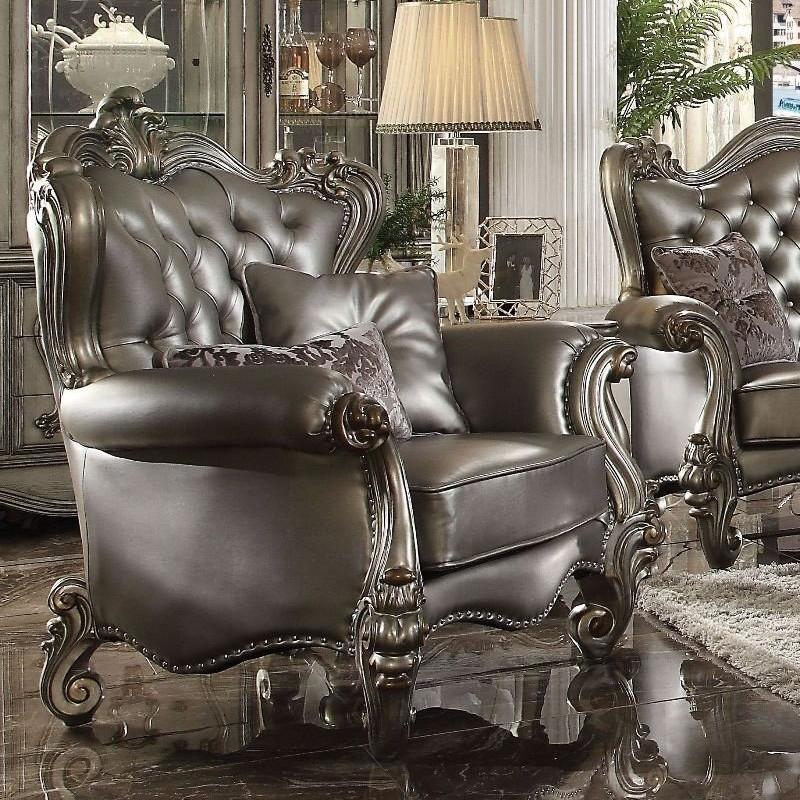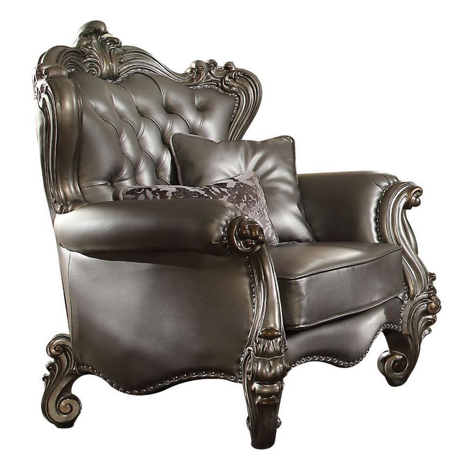 • Oversized Scrolled Trim: Vintage Hand-Brush, Nailhead (Crown-Backrest, Front Armrest & Leg), Padded Scrolled Base
