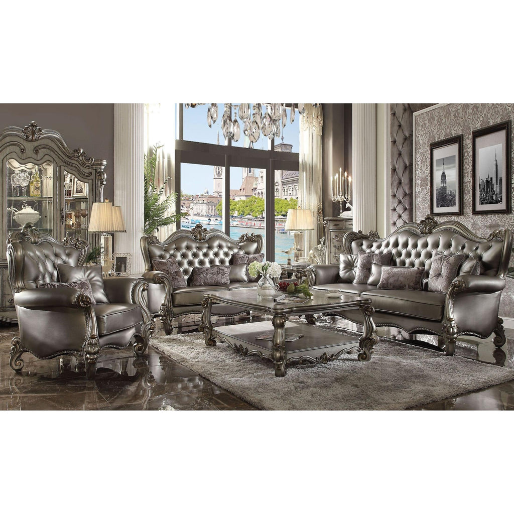 • Oversized Scrolled Trim: Vintage Hand-Brush, Nailhead (Crown-Backrest, Front Armrest & Leg), Padded Scrolled Base