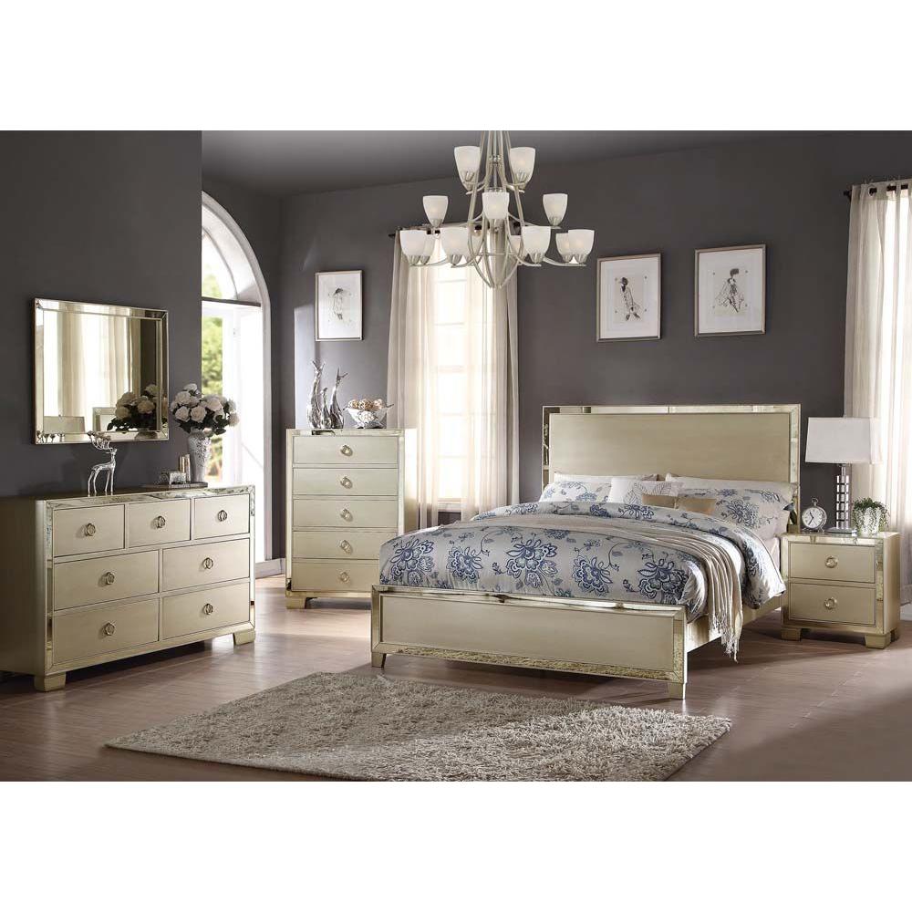 • Panel Bed: Wooden HB, Mirrored Trim Inlay