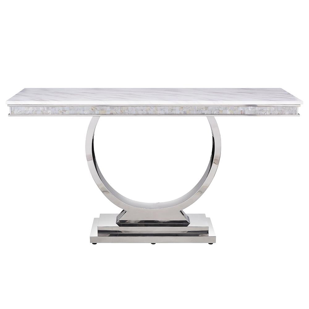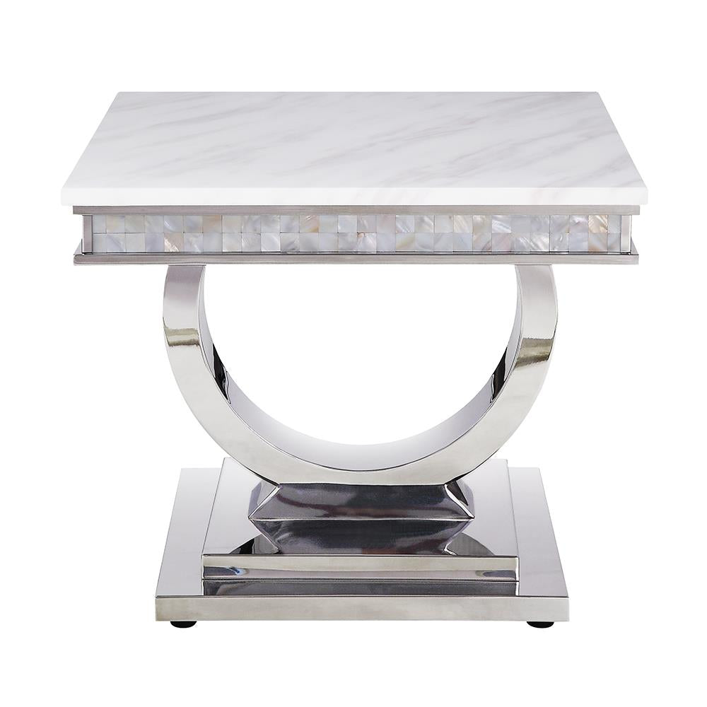 White Printed Faux Marble Top & Mirrored Silver Finish