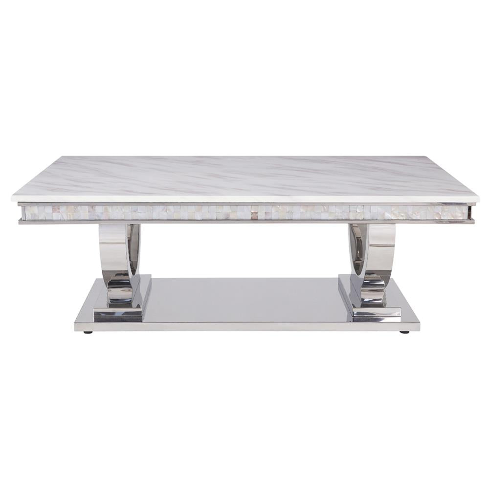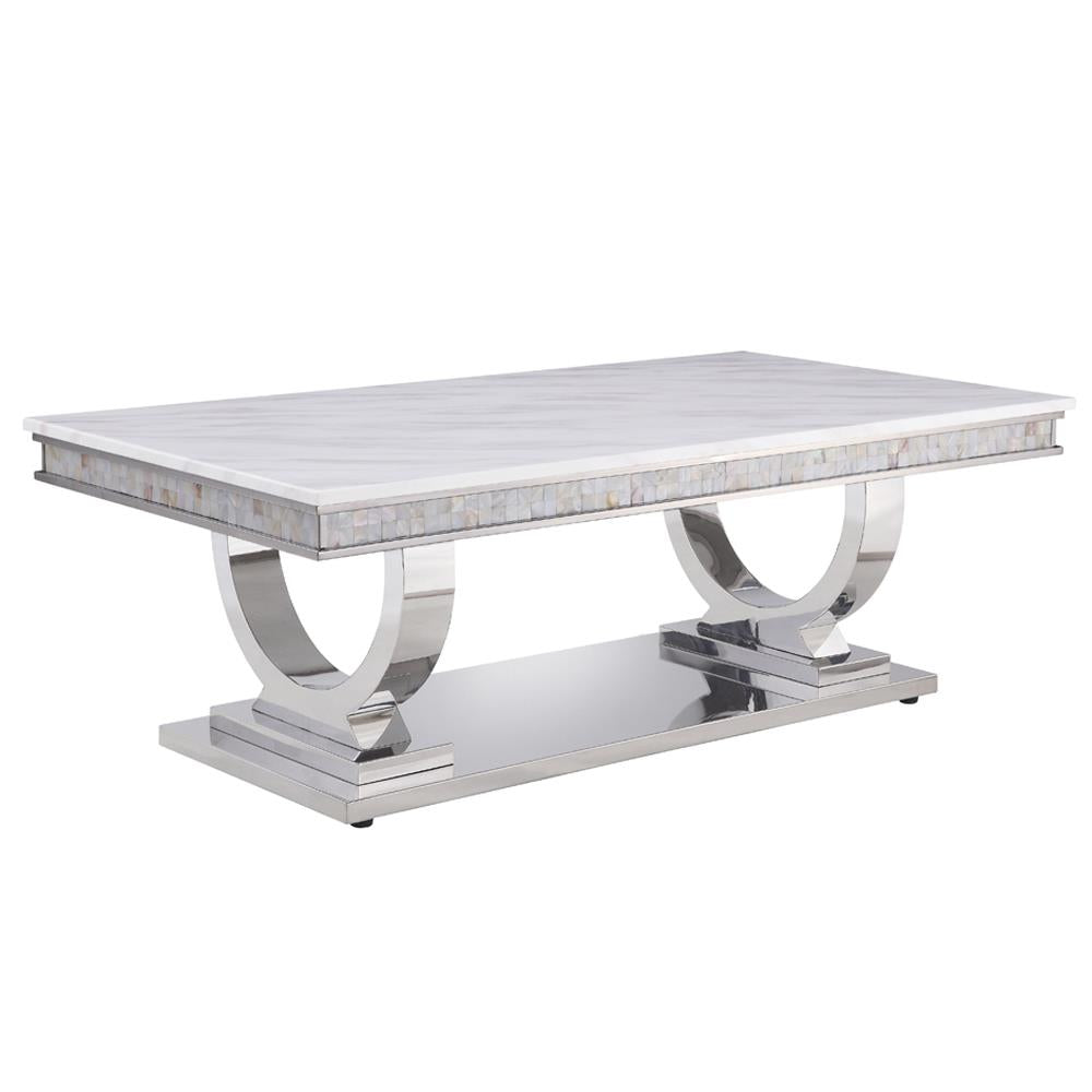 White Printed Faux Marble Top & Mirrored Silver Finish