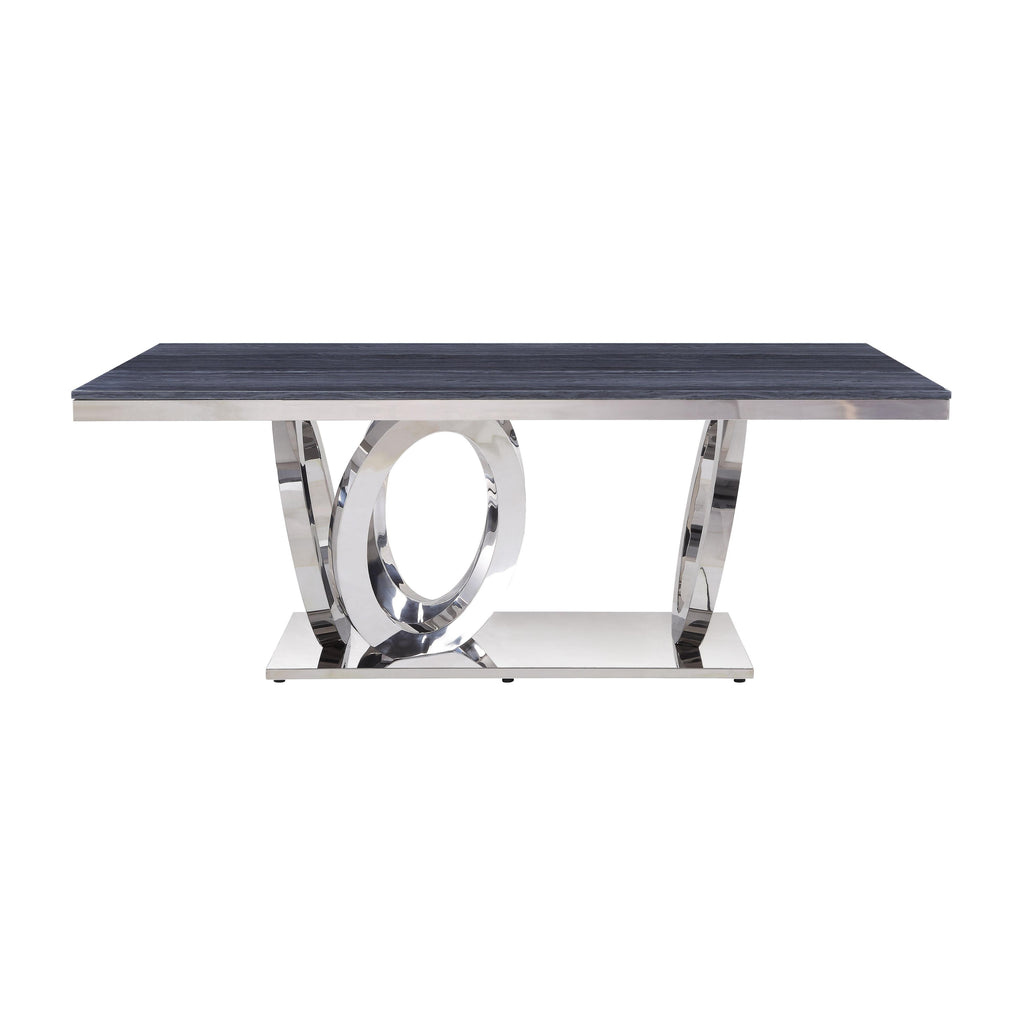 Grey Printed Faux Marble Top & Mirrored Silver Finish