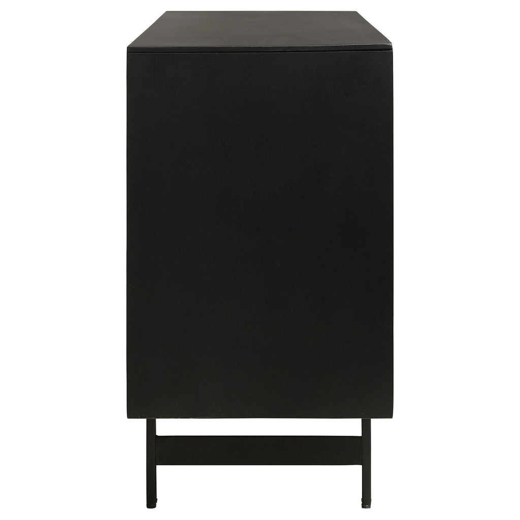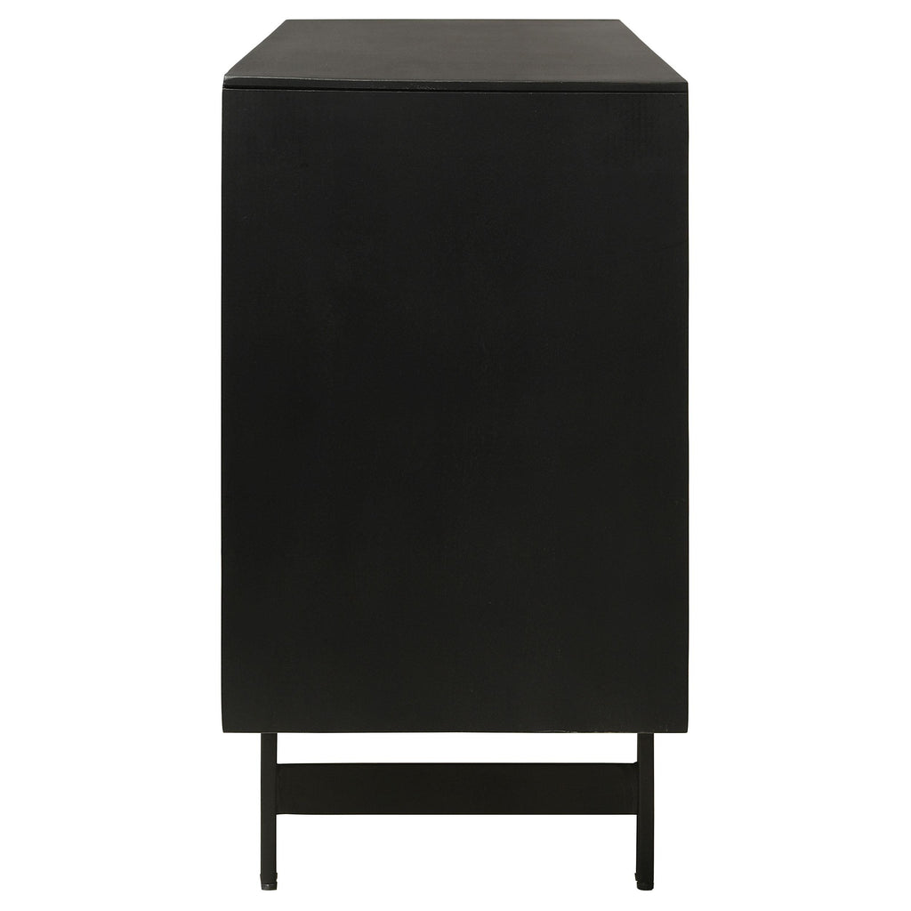 • Expertly carved mango wood accent cabinet with captivating 3D tile pattern