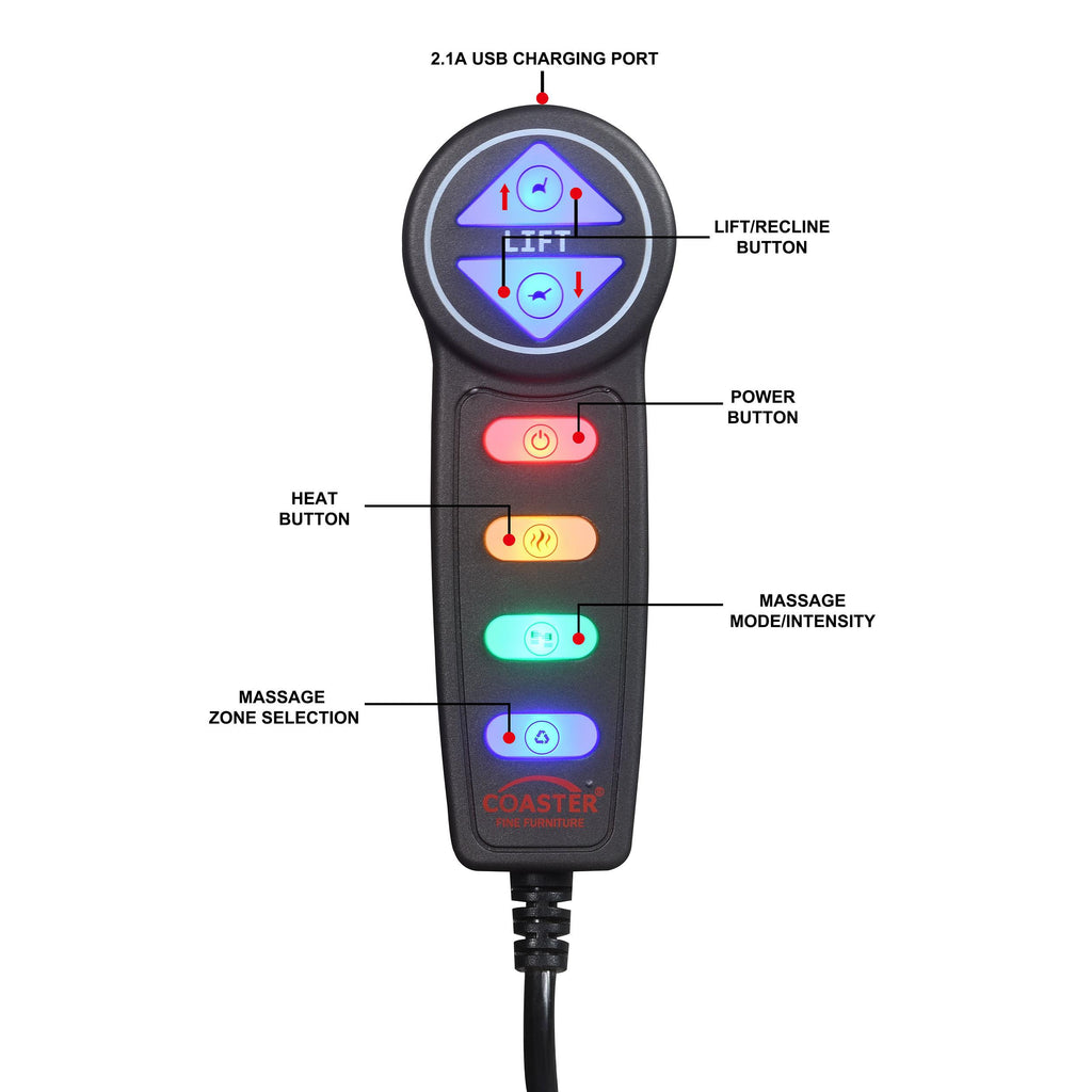 • Wired remote can be connected on left or right side and includes a 2. 1A USB charging port