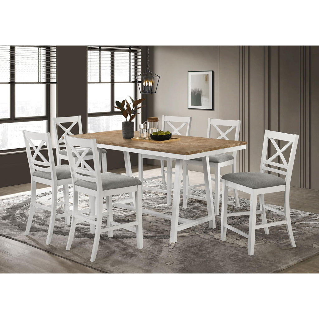 • Chairs include open X-cross backs that bright airy style and offer farmhouse charm
