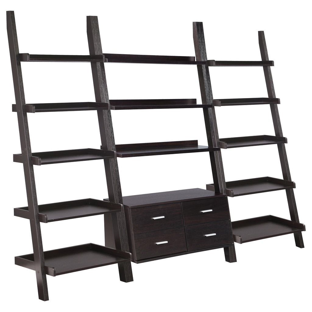 • Modular ladder bookcase collection in a cappuccino finish has modern craftsman appeal