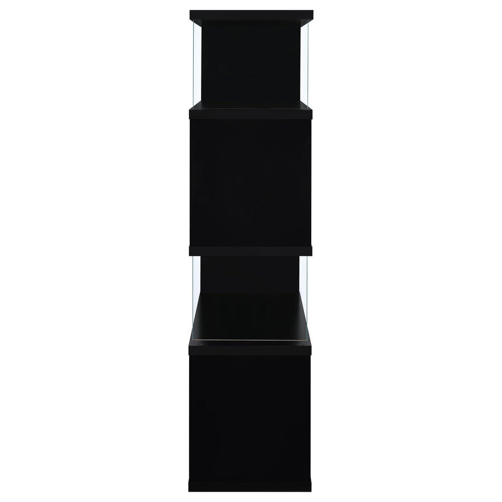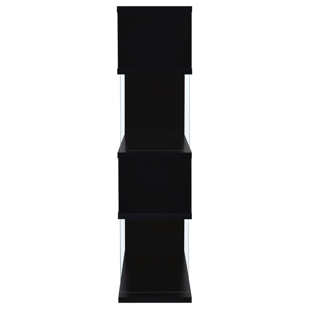 • Features clear tempered glass panels and four (4) tiers of shelving for a modern arrangement of books or collectibles