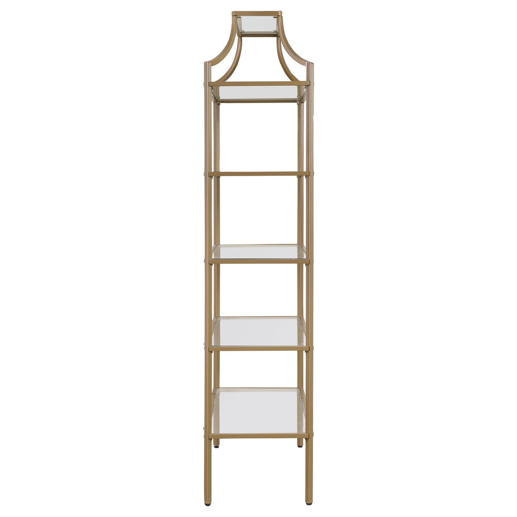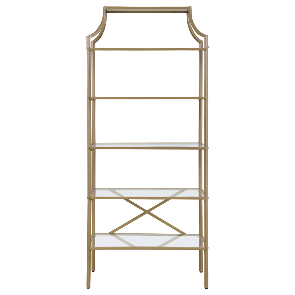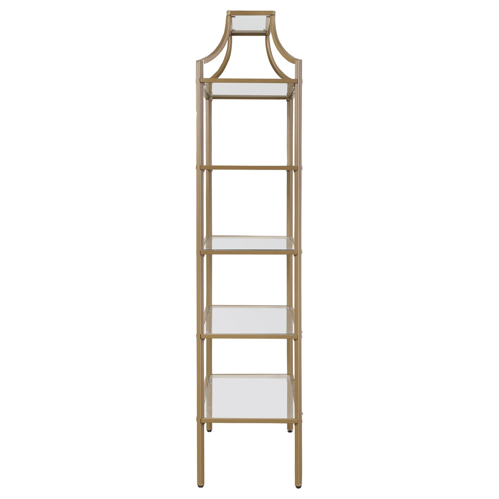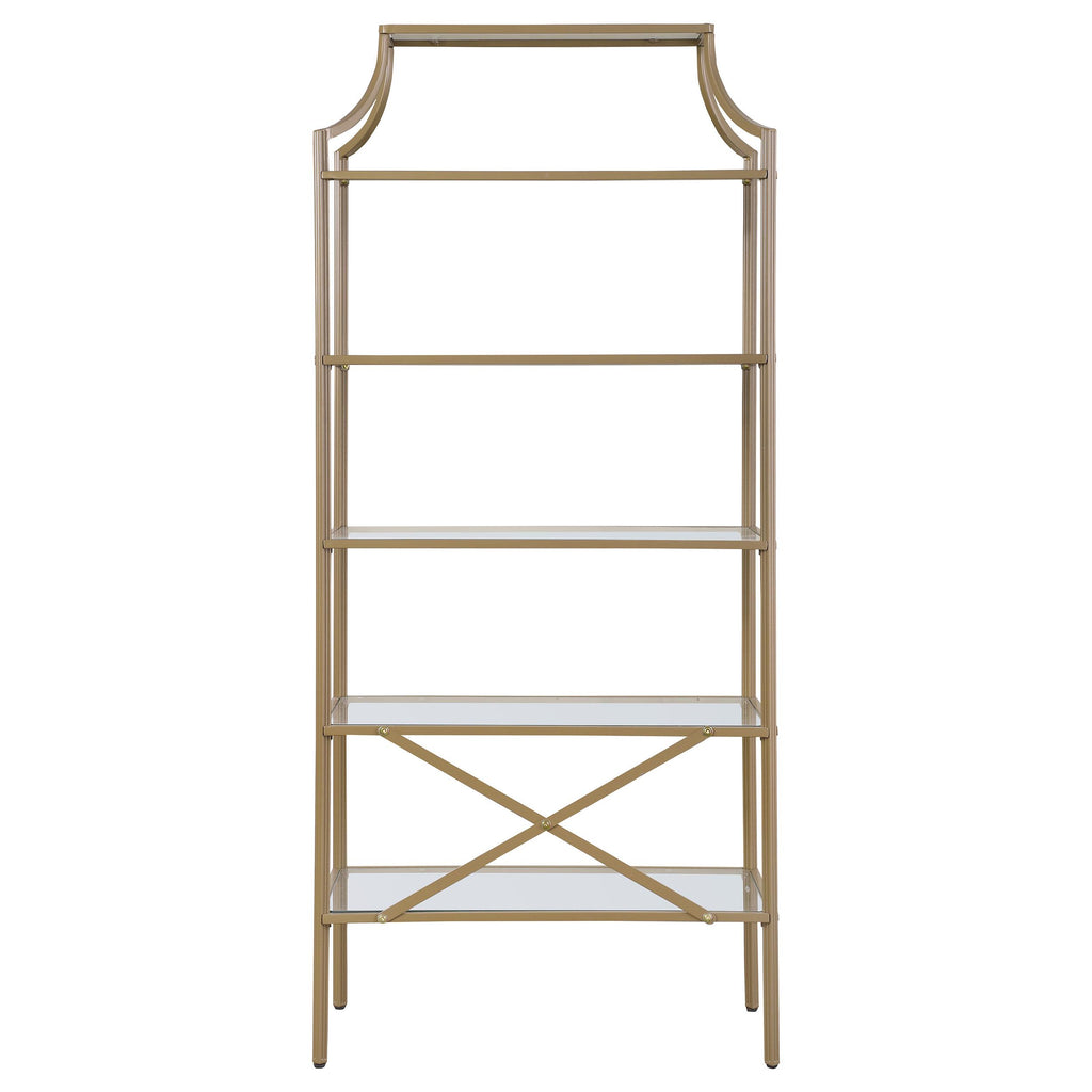 • Modern art deco bookcase in a sophisticated matte gold finish