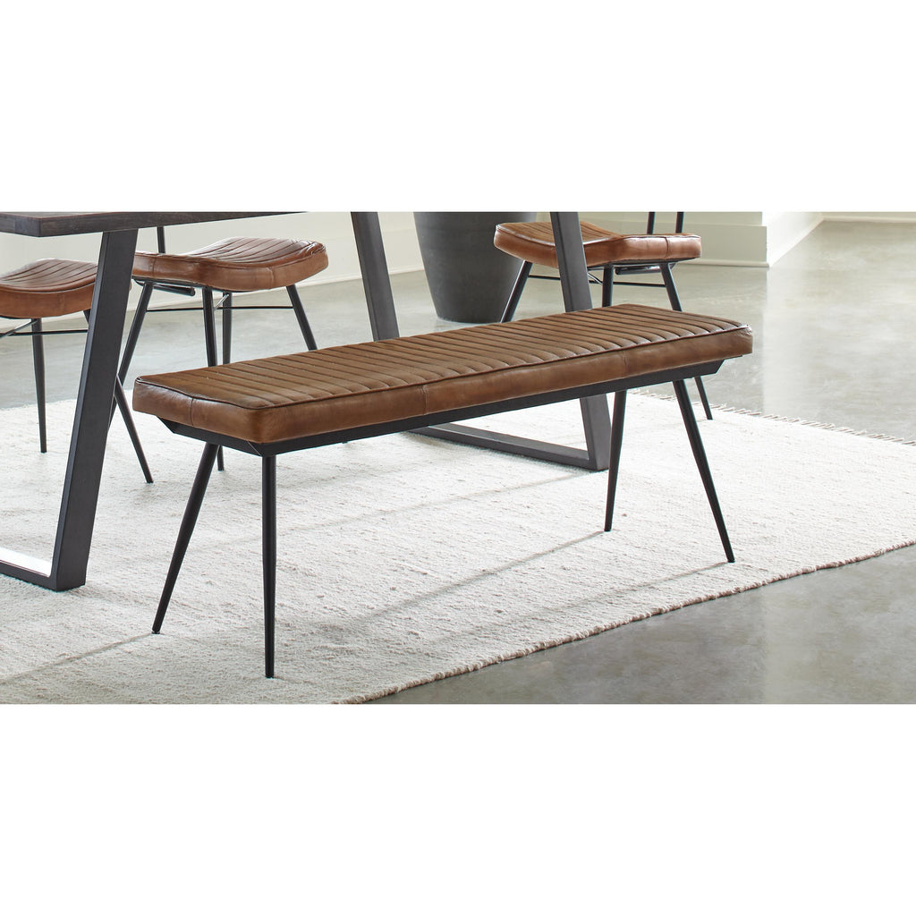 • Bench is crafted with hand dyed goat leather and metal. These are offered in camel as well as espresso leather colors.