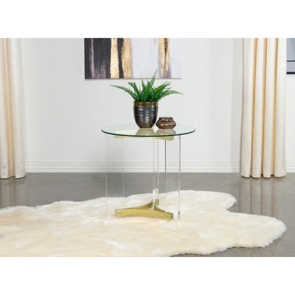 Coaster Furniture Janessa 710068 Round Glass Top Acrylic Leg Coffee Table - Matte Brass