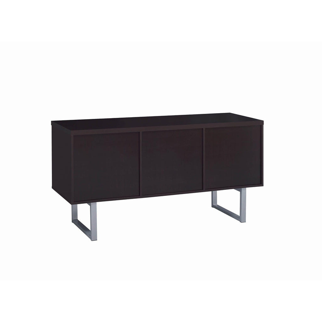• Credenza features expanded space with three (3) storage drawers, two (2) file cabinets, and an open storage compartment with an adjustable shelf