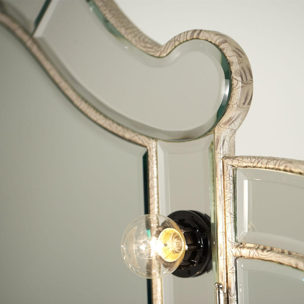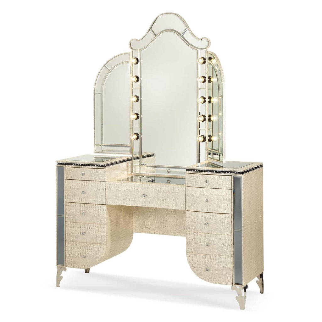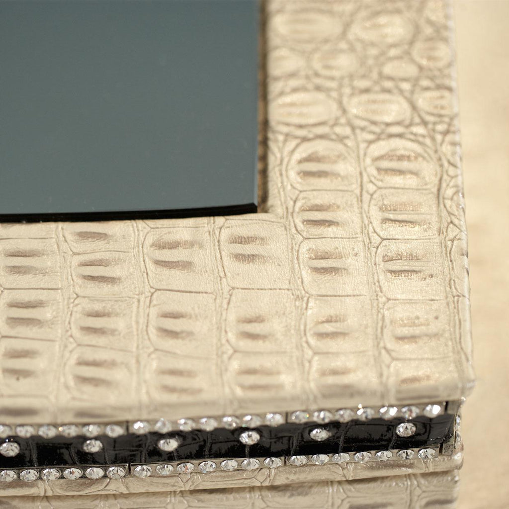 • Rectangular details in upholstered crocodile black with nail heads in silver color around top drawers