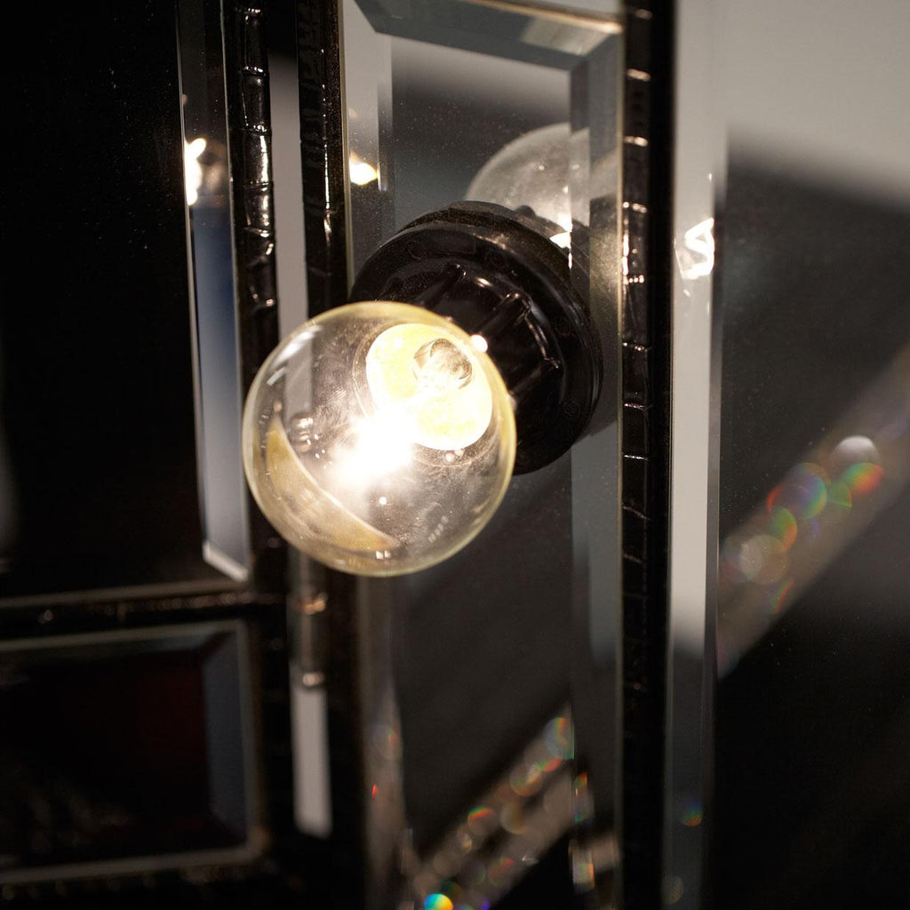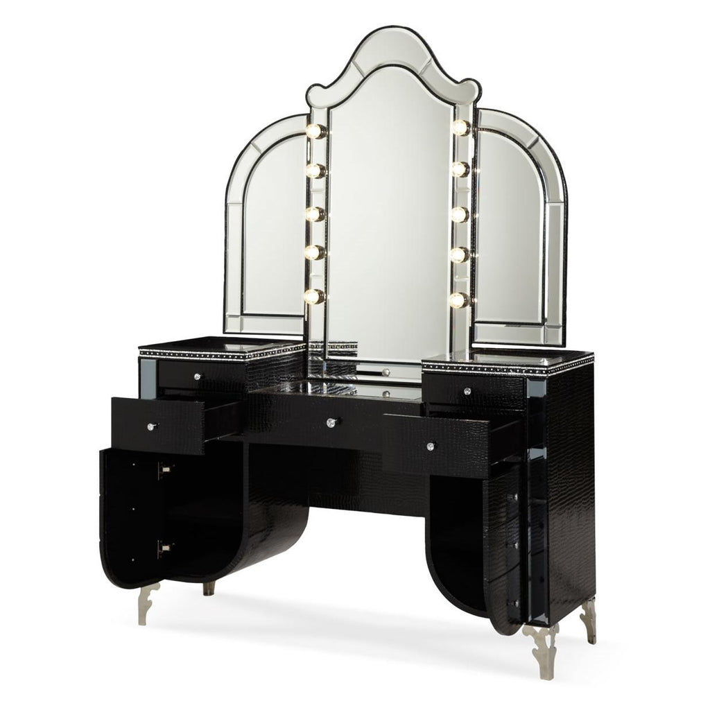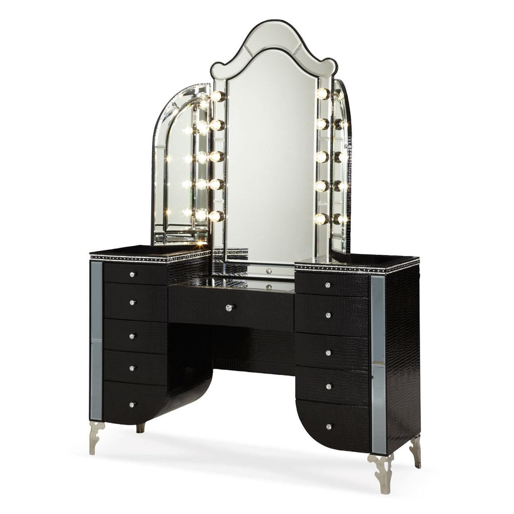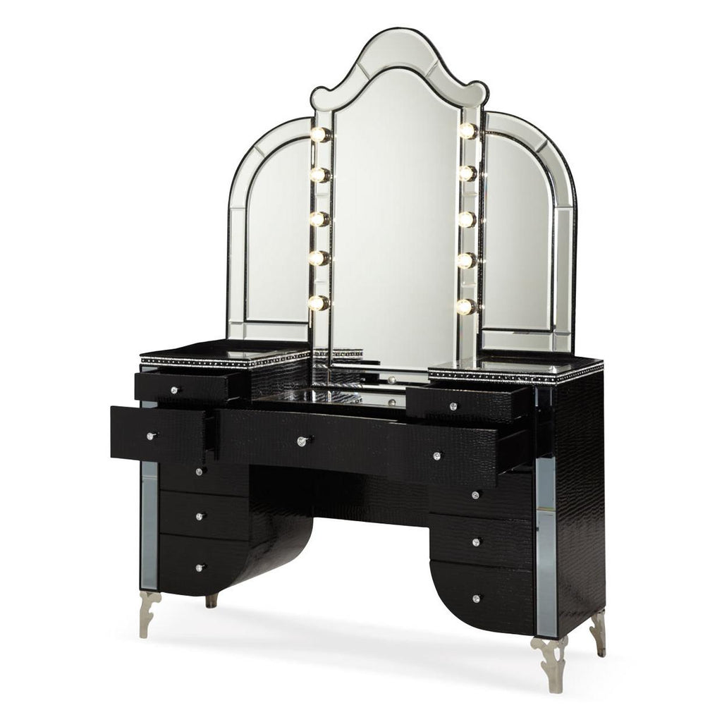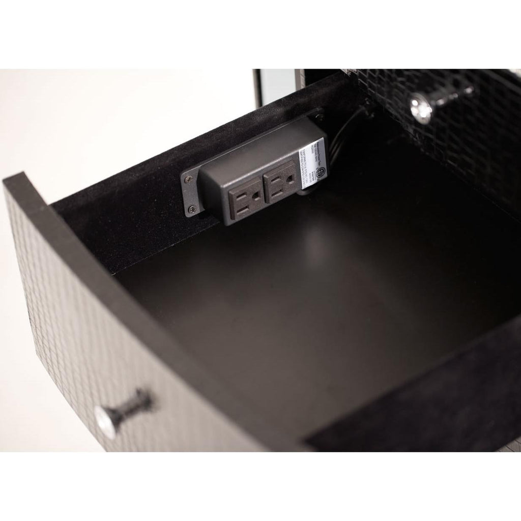 • Rectangular details in upholstered crocodile black with nail heads in silver color around top drawers