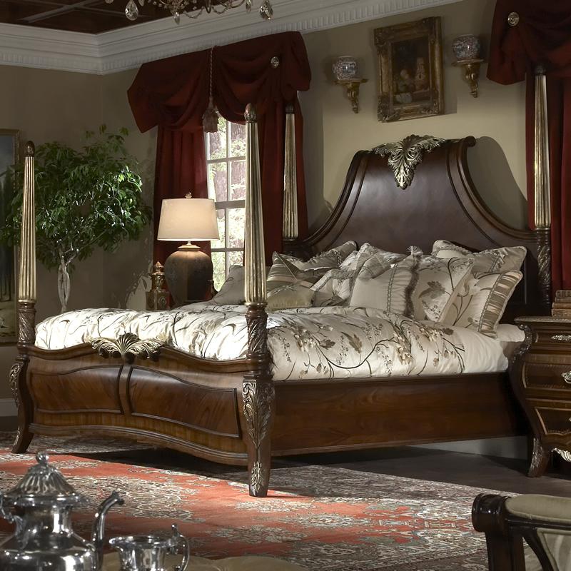 Unique brass plated bed post and shaped headboard