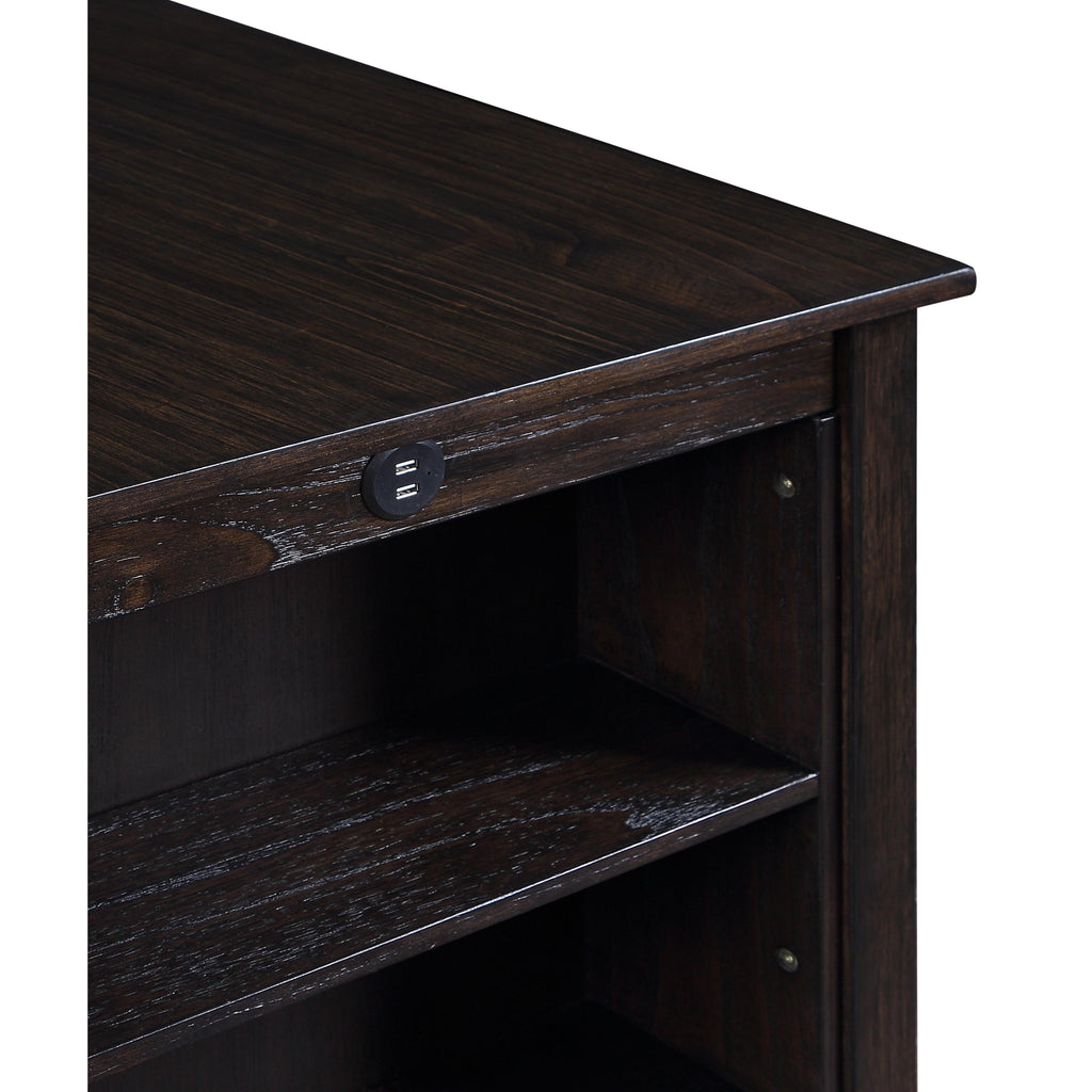 The compact Heston Counter Table Set packs a lot of style and function in a small space. The Table features... The compact Heston Counter Table Set packs a lot of style and function in a small space. The Table features a USB Charging Port and a Shelf Storage Unit with 2 adjustable shelves. The set includes two solid wood chairs with upholstered seat cushions and a sleekly styles lower back support. Perfect for apartments, breakfast nook, or office space. View more